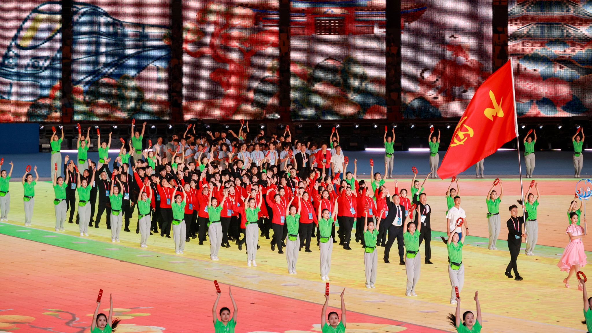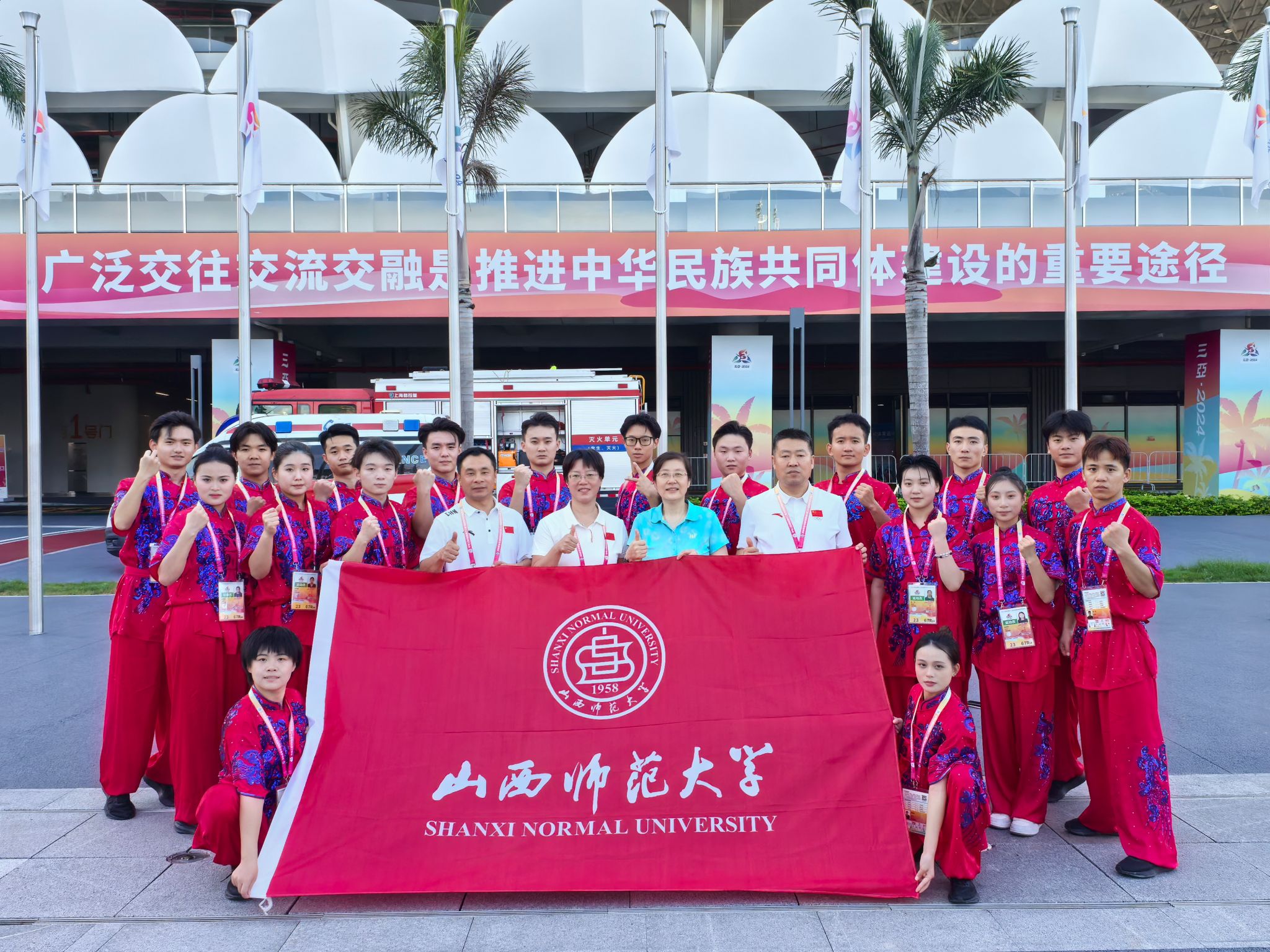 2024年11月22日至30日,中华人民共和国第十二届少数民族传统体育运动会在海南三亚隆重举行,中共中央政治局常委、全国政协主席王沪宁出席开幕式。山西省政协副主席李青山出席赛前动员会并为山西代表团授旗。我校代表山西省参赛的《洪洞通背拳》获得表演项目(综合类)二等奖。