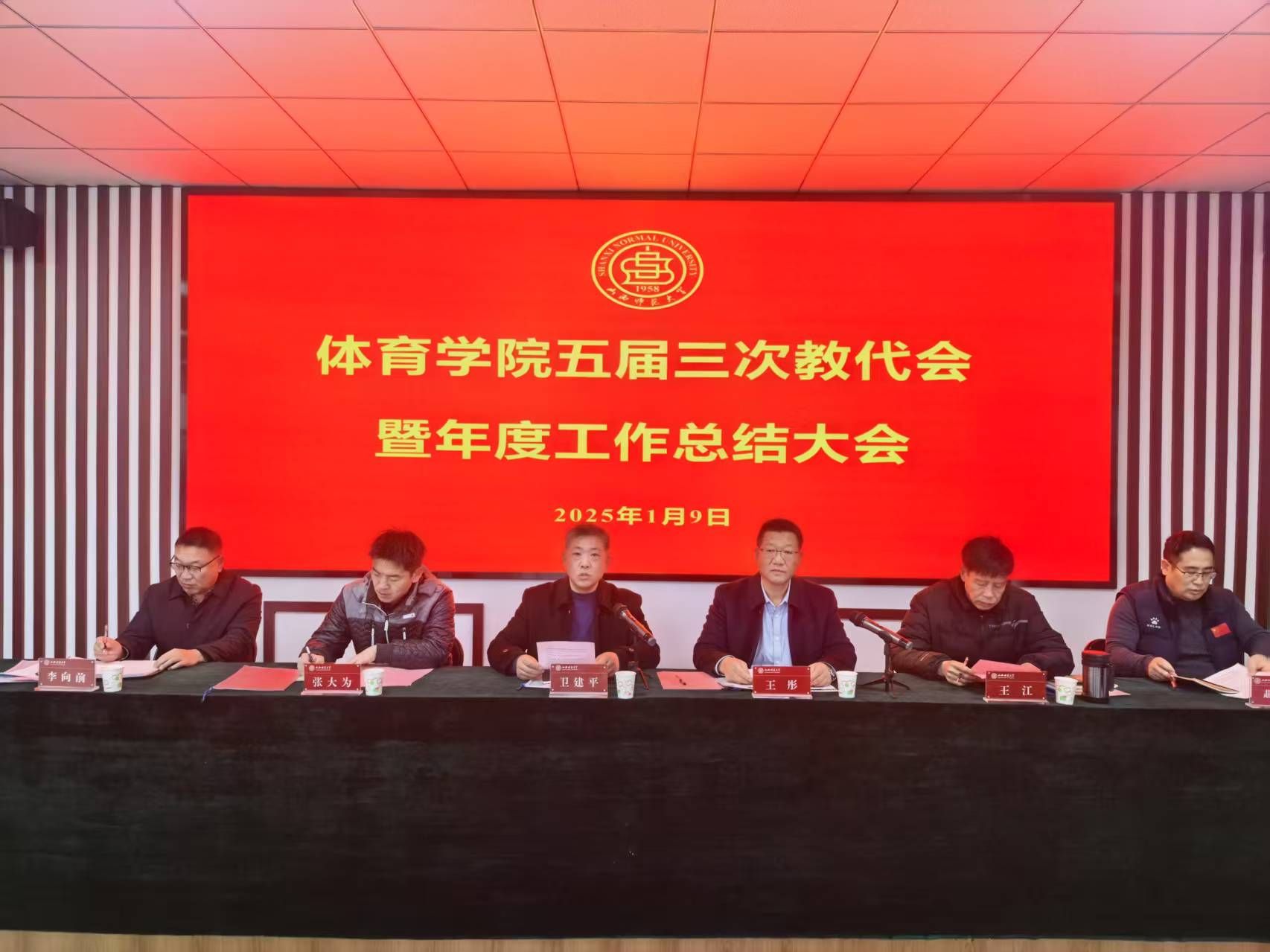 大会最后,学院党委书记卫建平作总结讲话。他对本次教代会的成功召开表示祝贺,对全体教职工一年来的辛勤付出表示衷心感谢。他总结了过去一年来学院工作的经验教训,希望在新的一年里,一要团结奋进,增强学院发展硬指标,做有担当的体育人。二要凝心聚力,提升学院发展软实力,做有温度的体育人。三要铸魂育人,传承师德师风好口碑,做有情怀的体育人。他强调,2025年是学院发展的关键一年,希望全体教职工能够统一思想、凝聚共识,以更加饱满的热情和昂扬的斗志投入到工作中,为实现学院的高质量发展内涵式建设贡献力量。