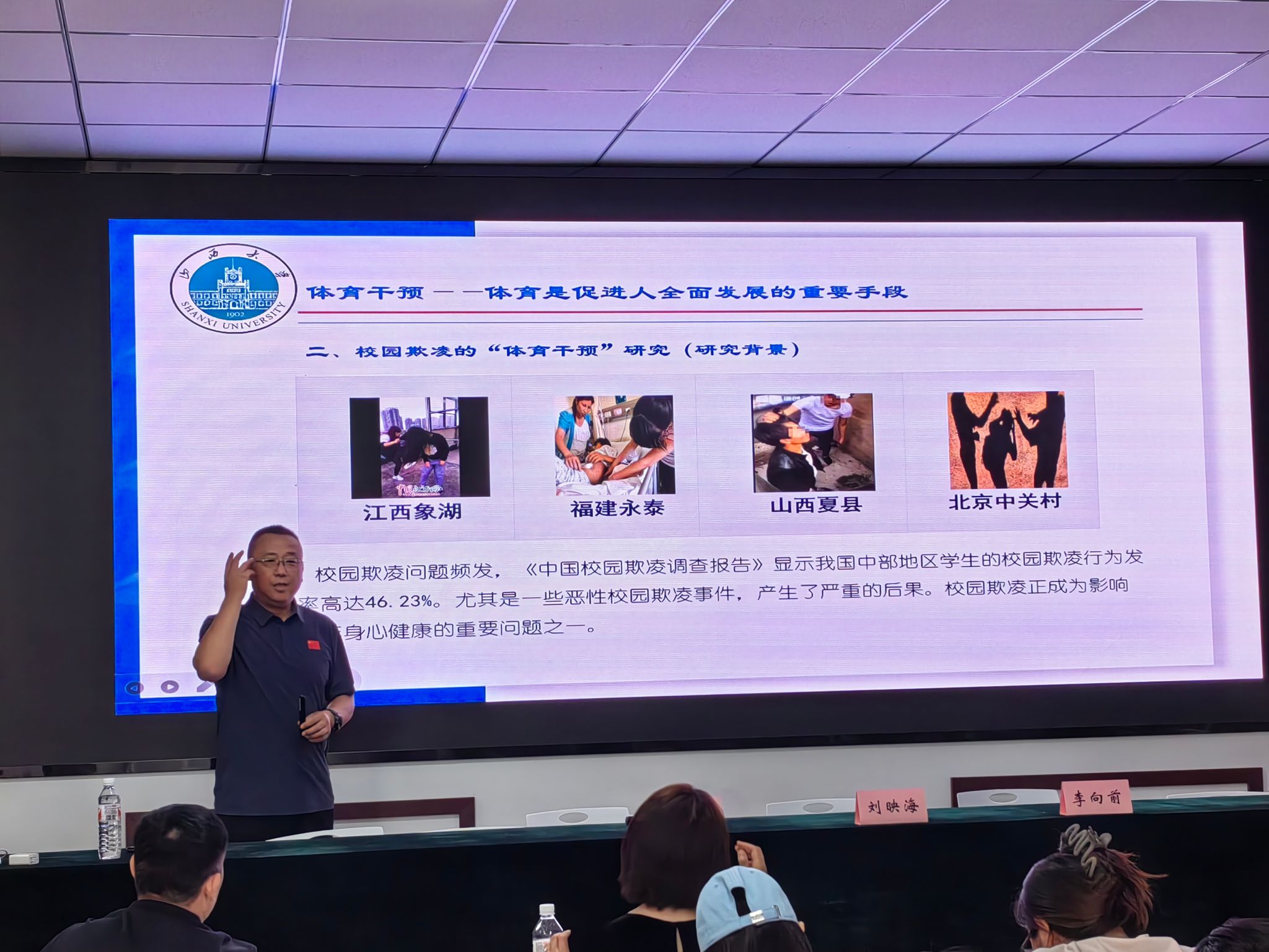 为提升我院研究生体育学术素养,2025年5月16日上午,我院特邀山西大学刘映海教授莅临做专题报告。报告题目是“民族传统体育与健康促进:来自体育干预的证据”。报告由王彤院长主持,我院近三年引进博士与40岁以下青年教师,以及在校研究生聆听报告。