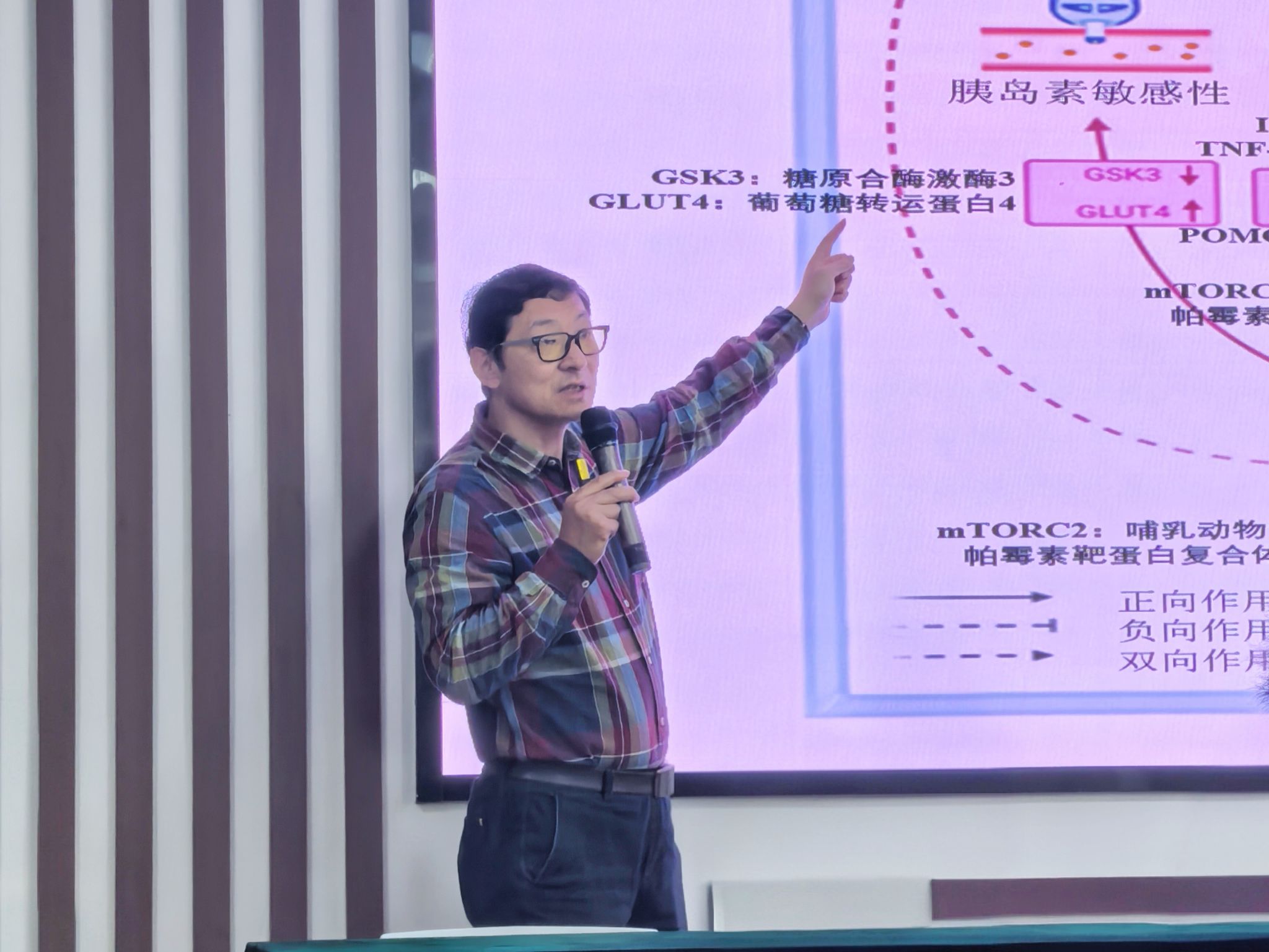 在讲座中,张教授运用前沿研究成果和典型案例,详细解析了运动与营养协同作用的分子机制,包括MAPK、PI3K等信号通路对脂肪代谢的影响,以及GLP-1等激素在食欲和能量平衡调控中的作用。此外,他介绍了间歇性禁食、生酮饮食等新兴干预方法,并结合有氧运动、抗阻训练的运动处方设计原则,为师生提供了科学、可操作的体重管理策略。最后张教授还探讨了科技赋能健康管理的前沿趋势,如可穿戴设备、数字孪生技术、智能运动营养系统等在个性化体重管理中的应用前景。