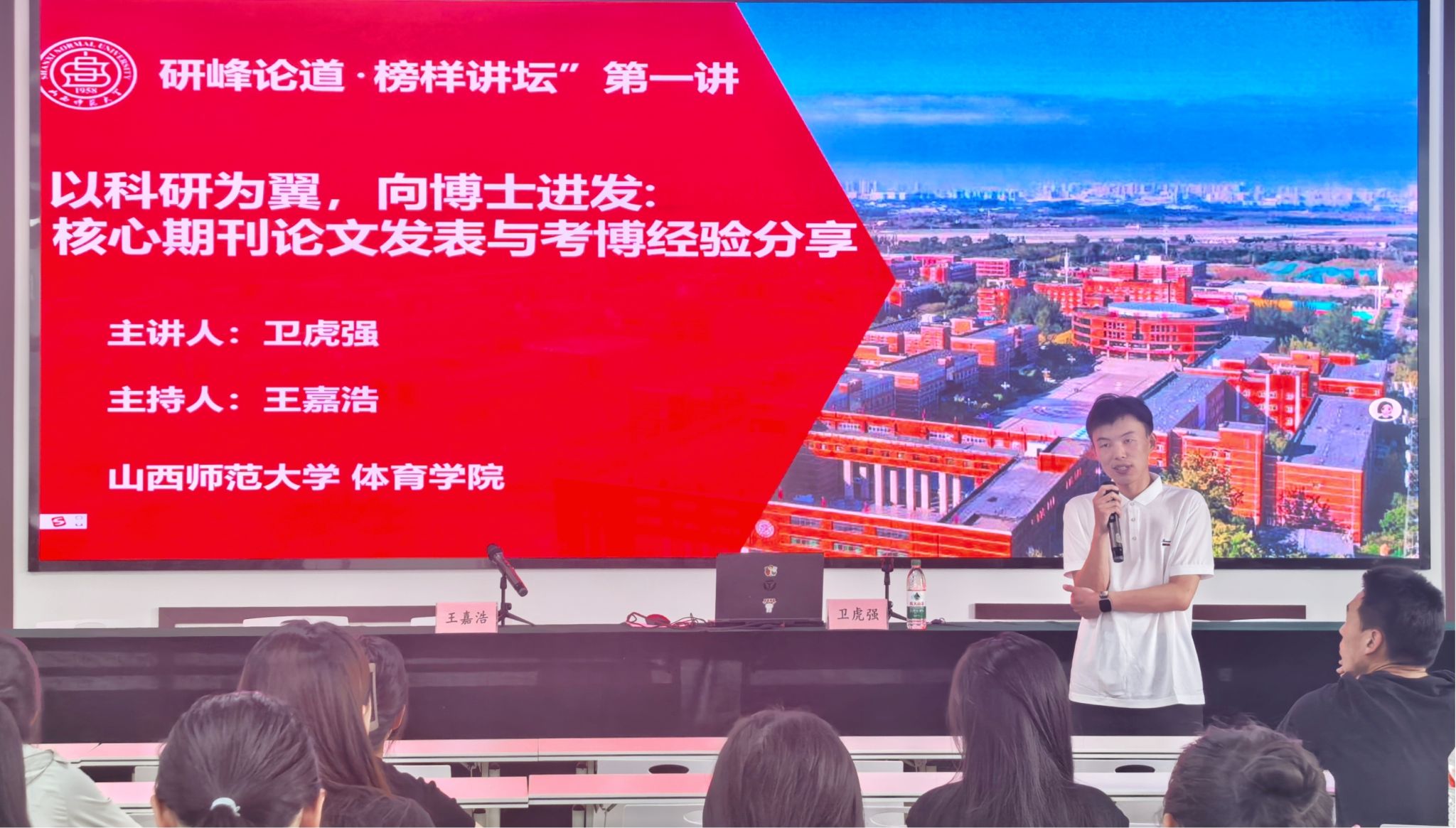 6月5日下午,我院“研峰论道·榜样讲坛”首场讲座在心理实验室举行。2025届优秀硕士毕业生卫虎强作了题为《以科研为翼,向博士进发:核心期刊论文发表与考博经验分享》的专题报告,近百名研究生到场聆听。李海伟副院长出席并作了总结。