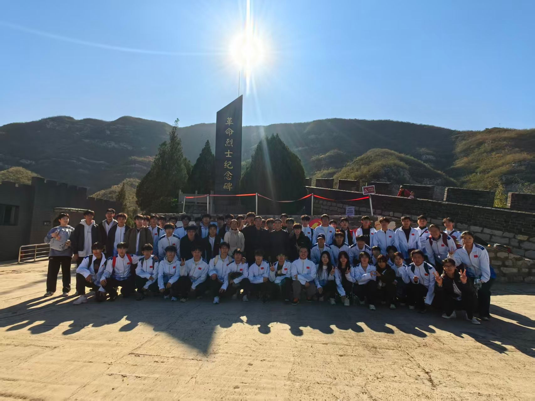 活动首站,师生一行抵达地势险要的娘子关。在庄严的娘子关革命纪念碑前,全体党员与学生们一同肃立致敬,共同聆听旅游管理专业师生结合战场遗址所作的现场微党课,深切缅怀在抗日战争中于此地英勇抗击外敌、为国捐躯的革命先烈。大家重温了那段烽火连天的岁月,深刻感受到了中国共产党领导下的抗日军民所展现出的不屈不饶、血战到底的伟大精神。这不仅是一次对党史和中国革命史的现场学习,更是一次触及灵魂的党性教育。