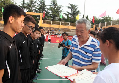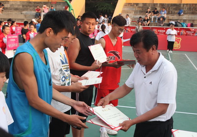 临汾市篮球协会副主席张建中为优秀志愿者颁奖