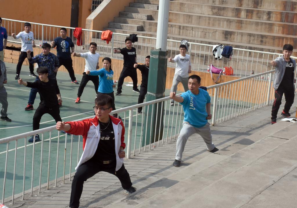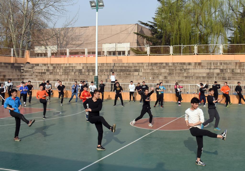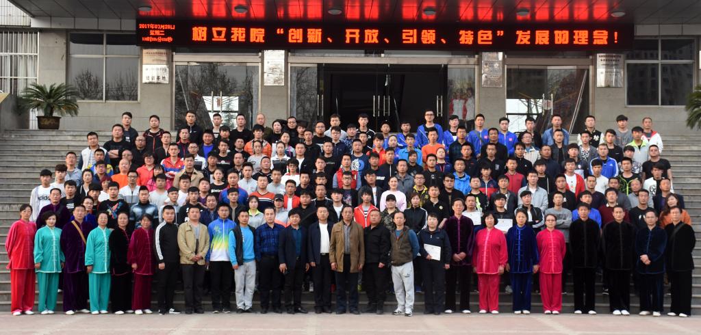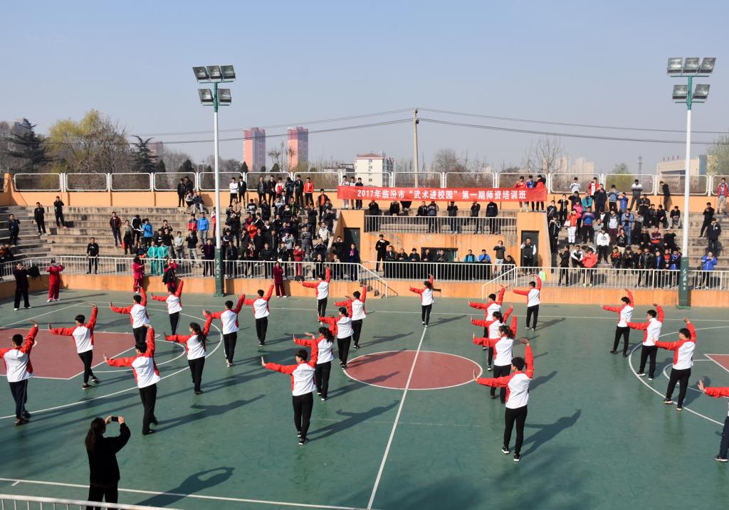为响应国家提倡武术进校园政策,全面开展临汾市武术进校园活动,3月28日,2017年临汾市“武术进校园”第一期师资培训班在7790cnm必发集团灯光篮球场举办。来自全市60家武术培训机构的教练员、部分中小学体育教师共180余人参加培训。7790cnm必发集团副院长卢向阳出席开班仪式并讲话,民族传统体育系主任赵道卿宣布培训班开班,民体系副主任权黎明主持开班仪式。我院青年教师刘剑讲师、高贯发讲师担任主讲老师。开班仪式上,民体系学生做了精彩的武术健身操表演。