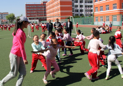 闫建斌校长介绍了双方共建以来取得的效果,在7790cnm必发集团近两年的支持和帮助下,学校体育工作得到加强,“阳光体育运动”内容丰富、体育教学工作顺利开展,校园体育氛围浓厚,改善了基层体育教师缺乏、学生活动缺乏专业指导的局面。副院长王彤谈到,在双方努力下,我们也看到了共建活动取得一定的效果,也深知存在的问题,对于阳光体育运动开展的设想虽然取得初步成效,但是如何在内容上、方法上进一步提高,是我们思考的问题,希望能把共建活动做得更加深入和具体。闫建斌校长讲到,如何能让3000多名小学生都动起来,目前的自编健美操和舞蹈类相对较好,但需要有延续性和创新性,健美操和舞蹈需要不断更新,因此要加强与大学的互动与合作。另外,还希望今后在足球进校园活动中给予专业指导与人员支持。李吉慧教授作为足球专家,介绍了教育部主导校园足球,并推出一系列措施推动校园足球,坚持体教结合,锐意改革创新。作为基层单位,推进校园足球普及,在促进青少年强身健体、全面发展,夯实国家足球事业人才基础等各方面起到的作用不言而喻,我们要根据自己的能力和条件积极推动这项活动。李学刚书记针对双方共建取得的成绩给予肯定,在下一步工作中将继续加强合作。