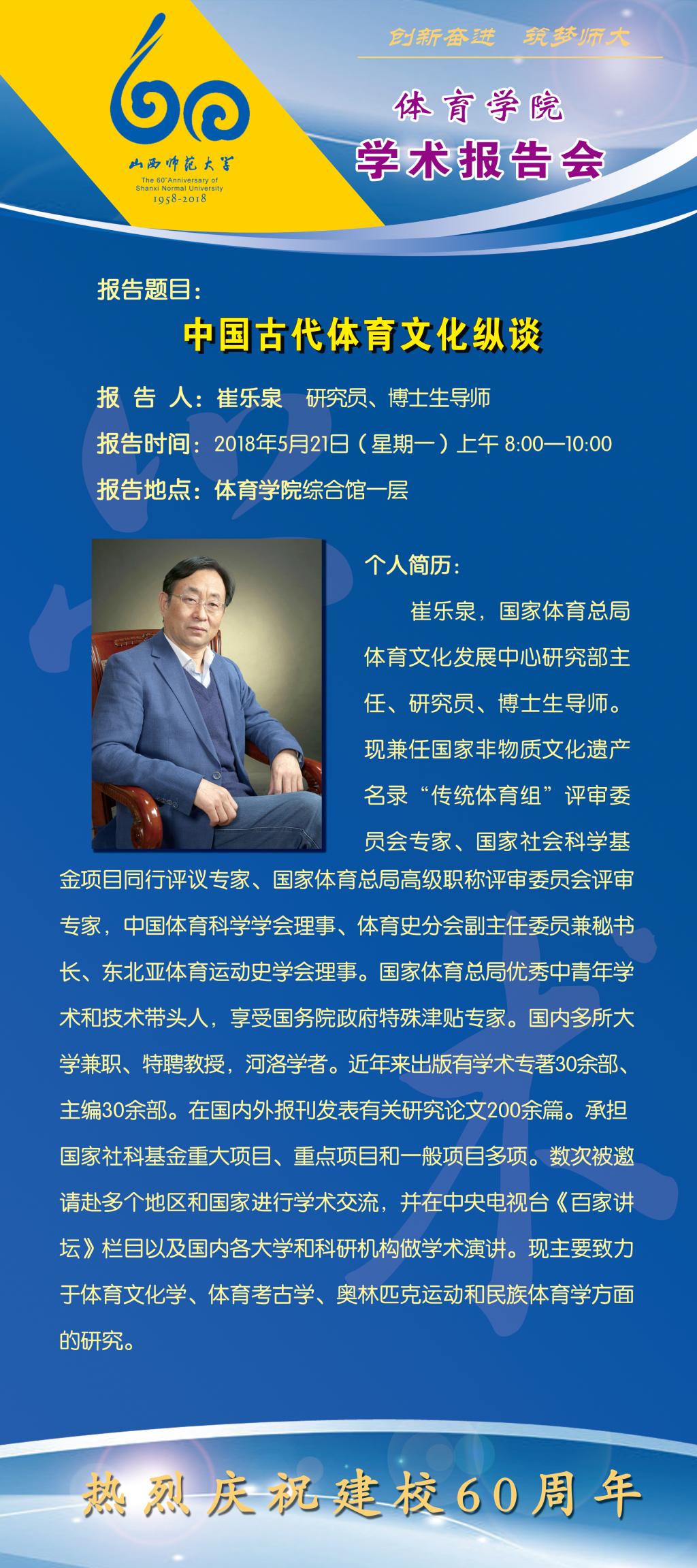 国家体育总局体育文化发展中心研究部主任、崔乐泉研究员应邀来我院作学术报告