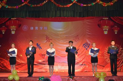 2015年6月11日晚七点半,由体育教育系党支部主办,团总支、学生会承办的“见证成长纪念青春”体育教育系欢送毕业生文艺晚会在大礼堂隆重举行。院党委书记李学刚、院长郑旗、院党委副书记段东升、体育教育系主任杨海龙、副主任张杰、辅导员刘林、郑志强观看了文艺表演。
