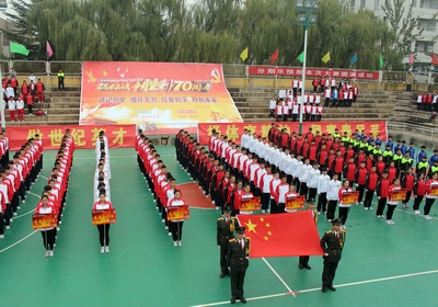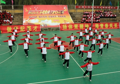 为纪念中国人民抗日战争胜利暨世界反法西斯战争胜利70周年,对广大青年学生进行爱国主义教育,同时检验教育教学成果,进一步提升学生的体育技能和水平。11月8日下午2:00,我院在灯光球场隆重举行了2015级队列队形暨广播体操比赛。学院领导及各系、各科室负责人观看了本次比赛。由冯瑞老师担任大赛的裁判长。