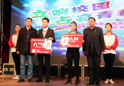 院领导为歌手大赛前三名选手颁奖