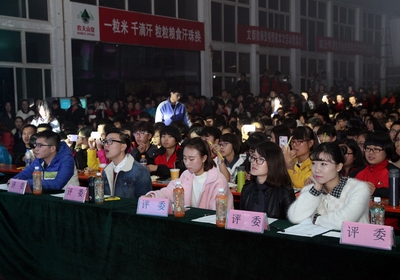 活动前期,在学院微信公众平台上进行了大力宣传。有80位选手报名参加了比赛,从海选、复赛一路走来,最终10名优秀的选手凭借自己的实力和对音乐的执着站在了今晚的舞台上。整个晚会流光溢彩,大礼堂座无虚席,激情四射的开场视频及灯光秀拉开了比赛的帷幕。