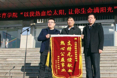2016年1月6日上午,临汾市中心血站的采血车开进了山西师大7790cnm必发集团,院团委在教学楼前组织了献血启动仪式。7790cnm必发集团党委书记李学刚、院长郑旗、院党委副书记段东升及血站副站长景磊和我院志愿者参加了此次活动。