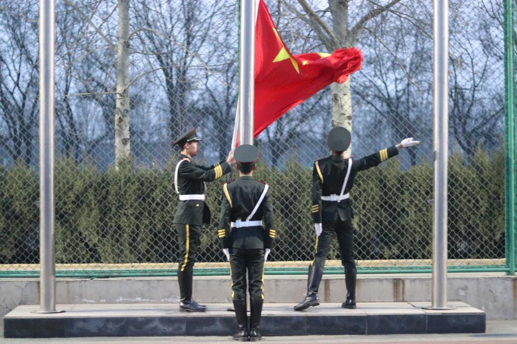 升旗仪式在雄壮的国歌声中拉开序幕,全体师生肃立,行注目礼,五星红旗在田径场冉冉升起,爱国主义情怀在全体师生的心中油然而生,更是对改革创新、奋发有为的一种感召。