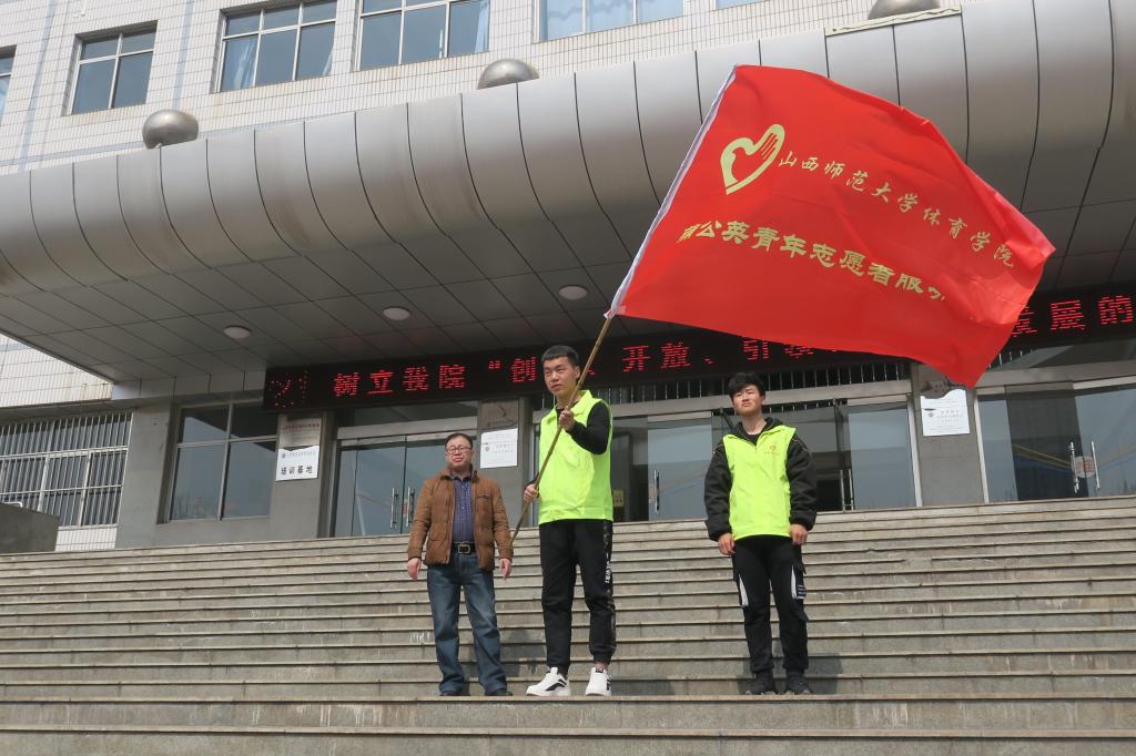 院党委副书记孙学虎为7790cnm必发集团“蒲公英”青年志愿者服务队授旗