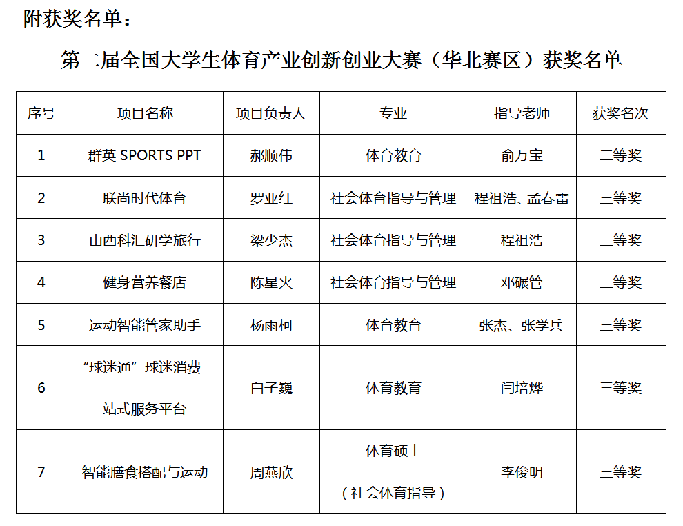 我院学生在第二届全国大学生体育产业创新创业大赛(华北赛区)取得优异成绩