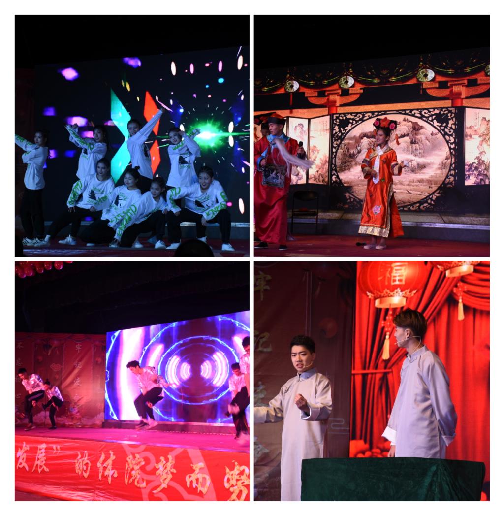 晚会在舞狮表演《雄狮闹春》中拉开了序幕,默契的配合和高难度的动作赢得了阵阵掌声,随后观看了全院师生和兄弟学院带来的新年祝福视频。晚会由运训1703班宋政演唱的《我的中国心》点燃了全场的爱国热情,民族健身操队带来的街舞《comebabycome》充满了青春活力,引爆全场,带来阵阵掌声。体教1904班带来的小品《甄嬛外传》通过风趣的表演,让同学们笑声不断,我院跳绳队带来的花样跳绳《律动青春》用炫酷的表演吸引全场眼球,《理想那点事》不禁让在场的同学思考如何靠努力奋斗实现自己的理想,一曲吉他演唱《成都》悠扬婉转。随后,由院工会郭丽娟等老师带来的健美操《快乐停不下来》,以欢快的节奏,点燃了我们的运动热情;刃羽轮滑协会的小品《占位子》让我们不禁思考什么是真正能够带给孩子们幸福的生活方式。钢琴演奏《大鱼》,配上音乐学院带来的舞蹈,让我们明白人生路程的珍贵,勇敢去做每一件事。国防军事拓展协会带来的战术表演《强军之战》体现了顽强拼搏的精神,情景剧《钱学森》向伟人致以崇高敬意,古筝笛子合奏《礼仪之邦》体现了泱泱中华不愧为礼仪之邦的称号。最后,武术表演《中华魂》演绎出中国国粹的精华和中华传统武术的博大精深。