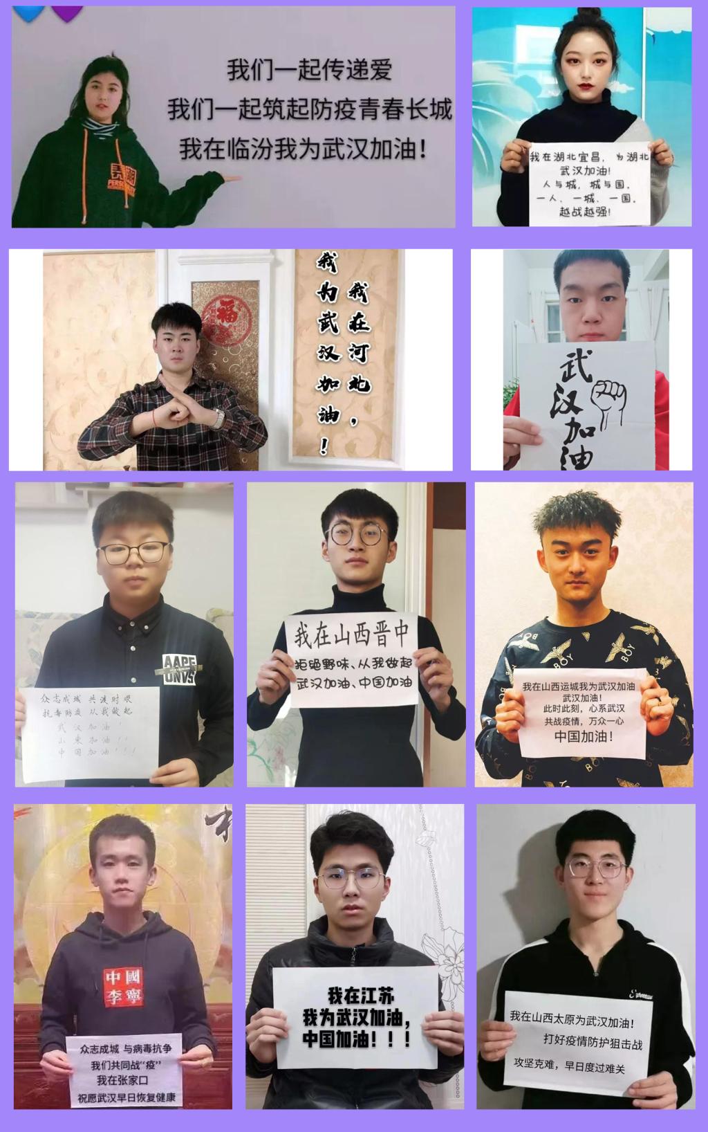 疫情隔绝人但隔绝不了爱,7790cnm必发集团学生牵挂着武汉的同胞。2月3日,院团委学生会的干部们,自发录制视频,在山西、河北、山东、江西等全国各地为武汉加油,坚定打赢疫情防控阻击战的信心和勇气。