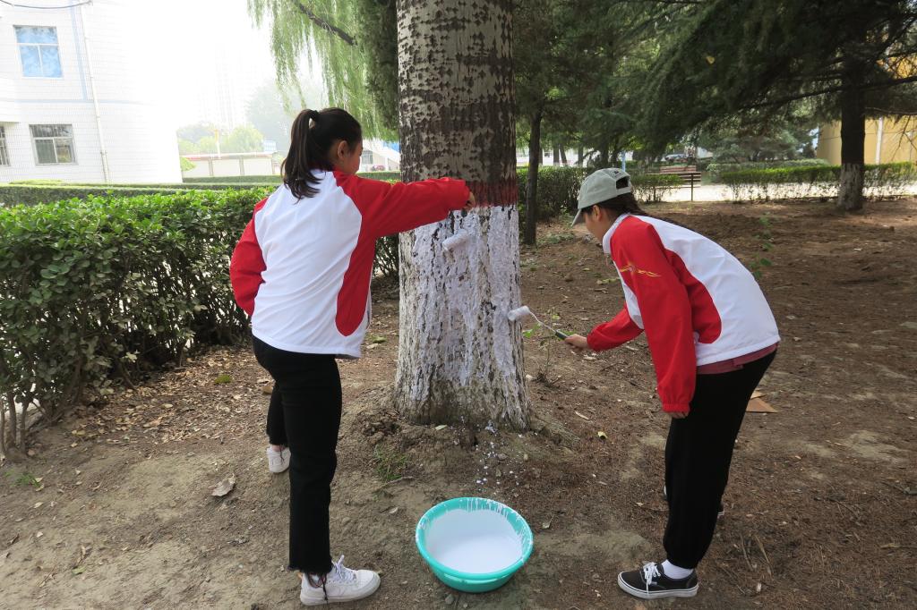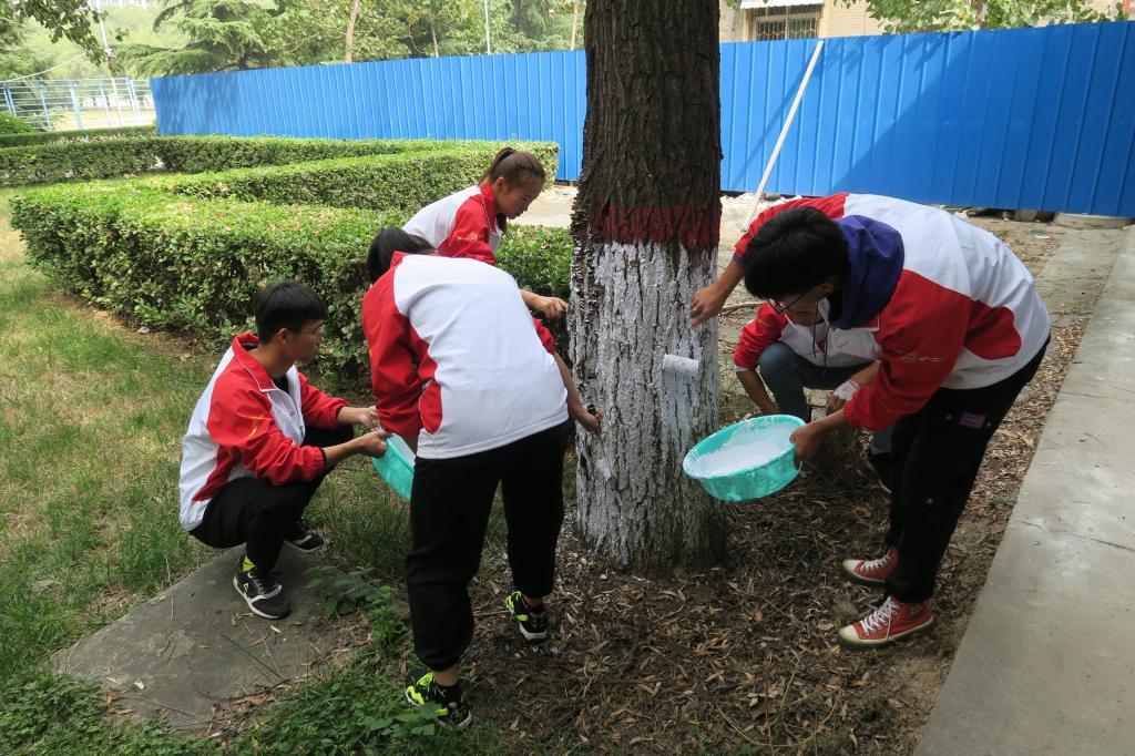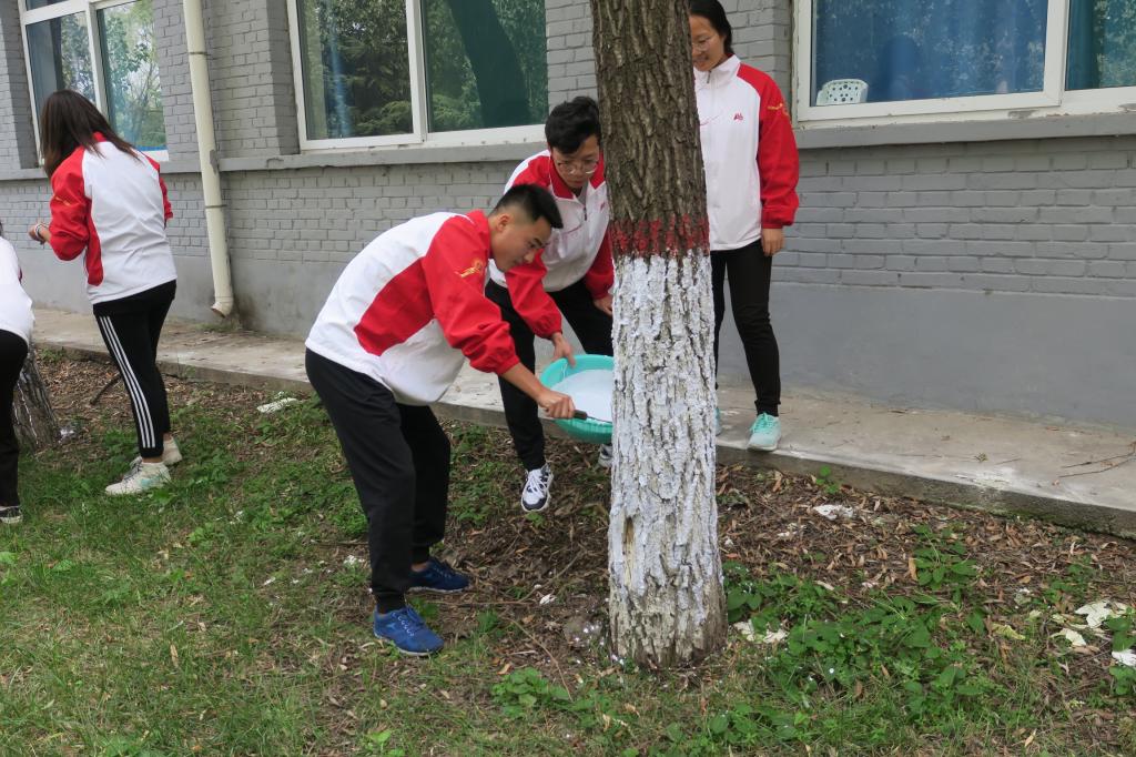 同学们自带水盆,拿到刷子、油漆等刷树工具后,各司其职,干劲十足,按照标好的红色印记开始粉刷。绿意盎然的校园呈现出一派热火朝天的忙碌景象,在“刷树”现场,即使石灰水溅到身上,也丝毫没有影响大家的热情,充分发扬了我院学子不怕脏、不怕苦、不怕累的劳动精神。