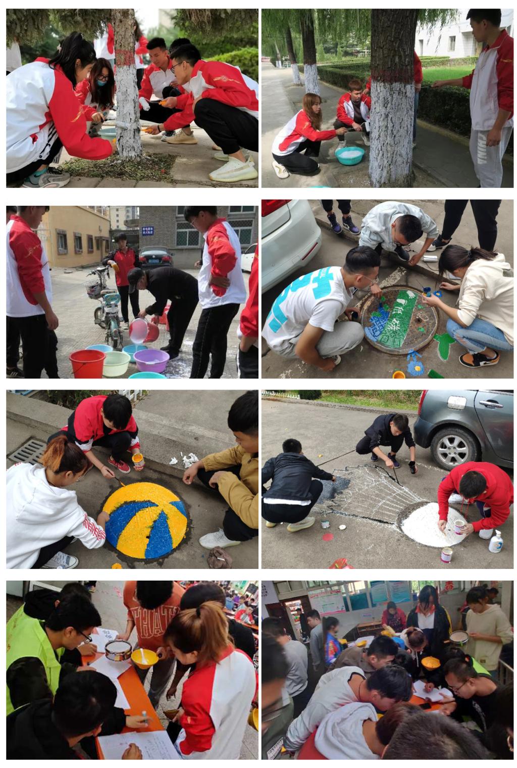 在学院统一安排下,有效整治了综合馆门前、教学楼楼下乱停乱放电动车、自行车现象,排除安全隐患,维护校园文明秩序;运动训练系党支部经过精心设计,将校园内平常的井盖创意出各种各样的图案;在院学生会带领下,学生们为校园内的树木进行了粉刷,增强同学们对环境保护意识;学生党员在食堂开展了“日惜一粒米,千日一斗粮”的“光盘”主题活动,目的制止学生餐饮浪费。