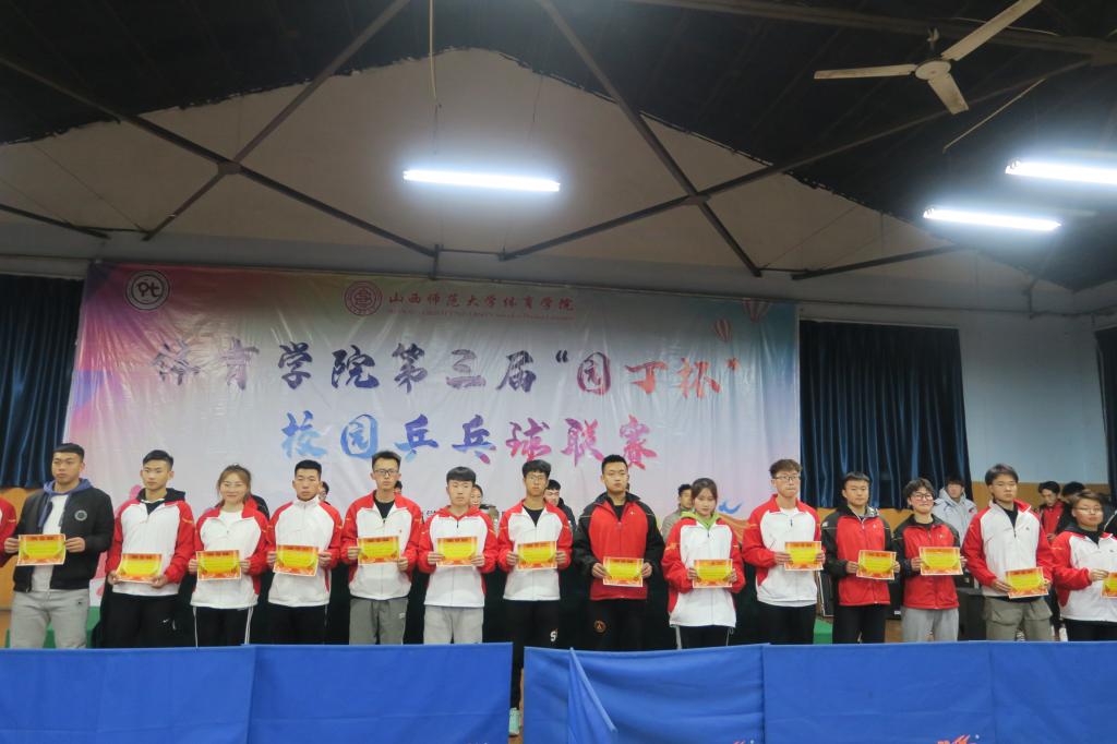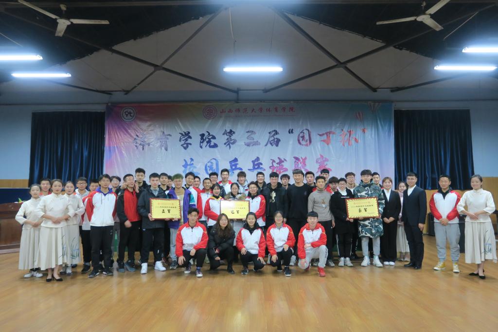 为进一步丰富校园生活,推动我院乒乓球运动的发展,11月24日至12月7日,由院社团联合会主办、乒乓球协会承办的7790cnm必发集团第三届“园丁杯”校园乒乓球联赛在乒乓球馆顺利举行。本次比赛共有来自体育教育系、社会体育系、运动训练系、民族传统体育系和体育教育二系的38个班级200余名同学参加。