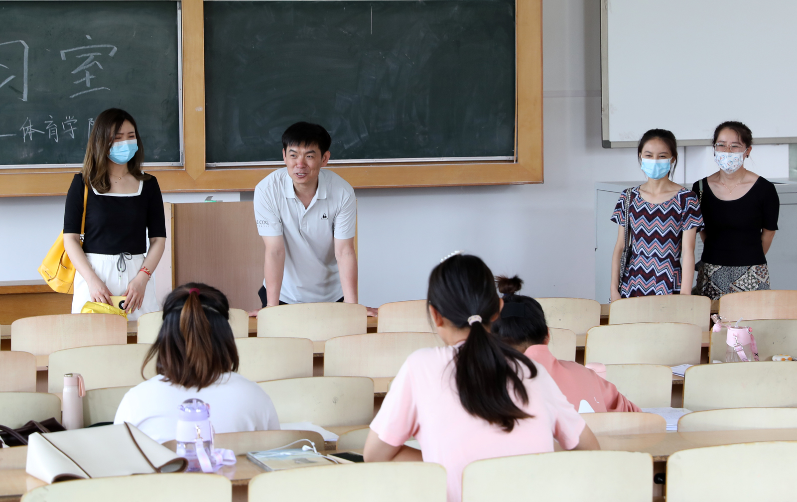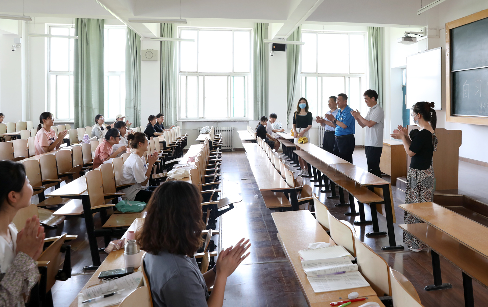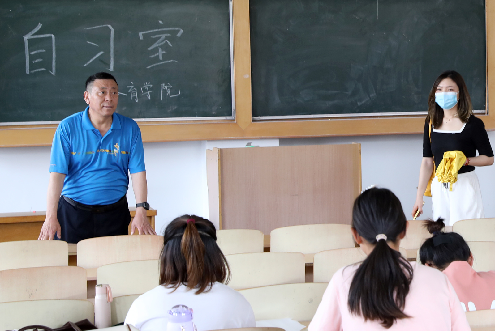 随后,学院领导老师们走访了学生自习室,与同学们进行了交流。院长郑旗讲到,在留校的特殊时期有问题一定要及时跟学院、跟辅导员沟通,学院会尽力帮助同学们排忧解难,同时,要特别注意宿舍用电安全、人身安全等问题。最后,郑院长代表学院为同学们送上端午节祝福,同时祝愿大家在四六级考试中取得好的成绩!