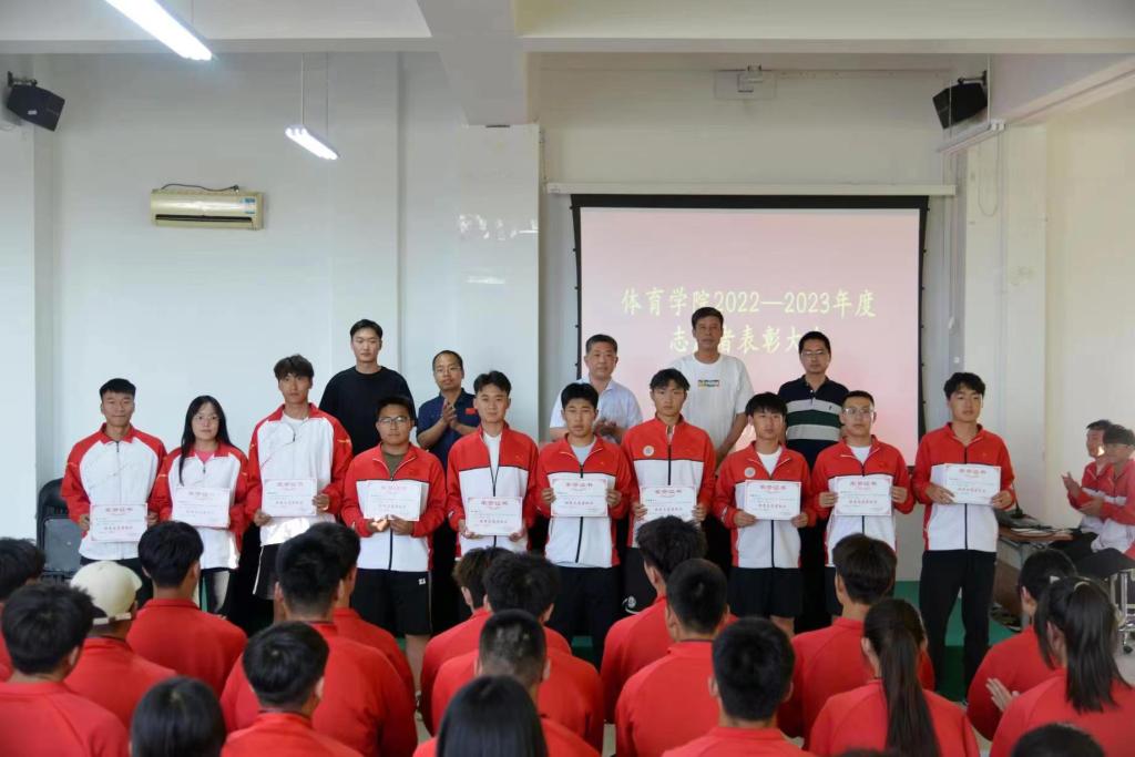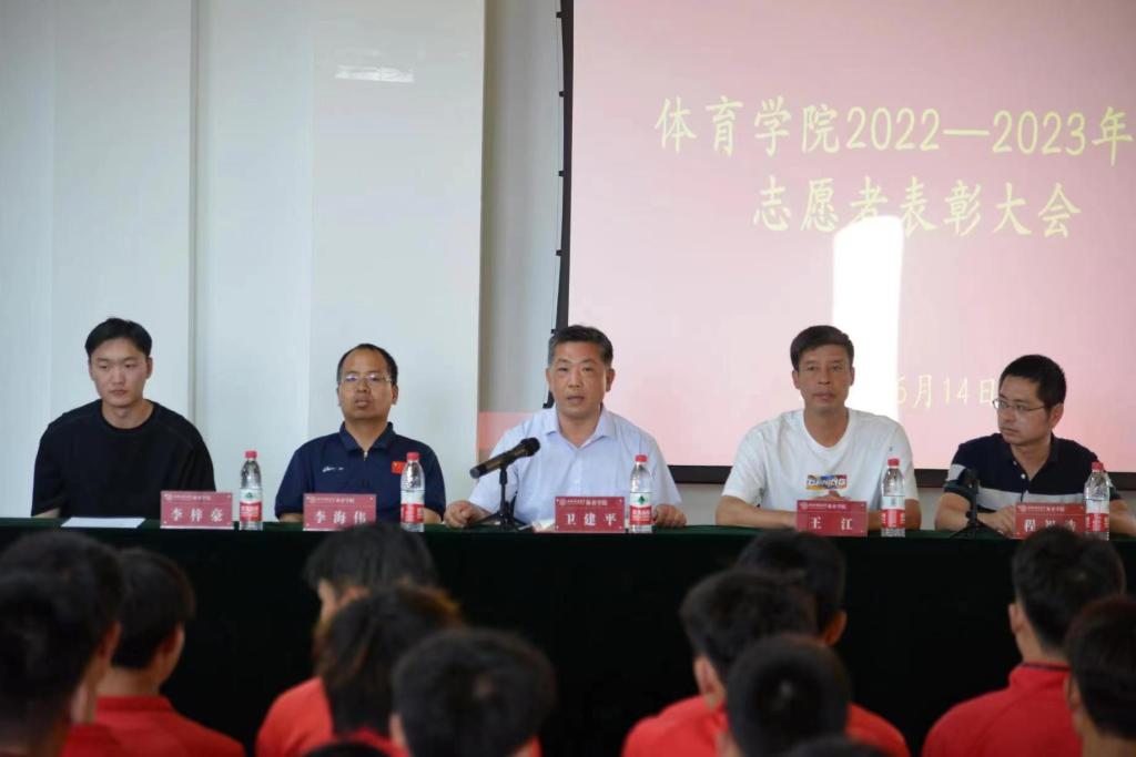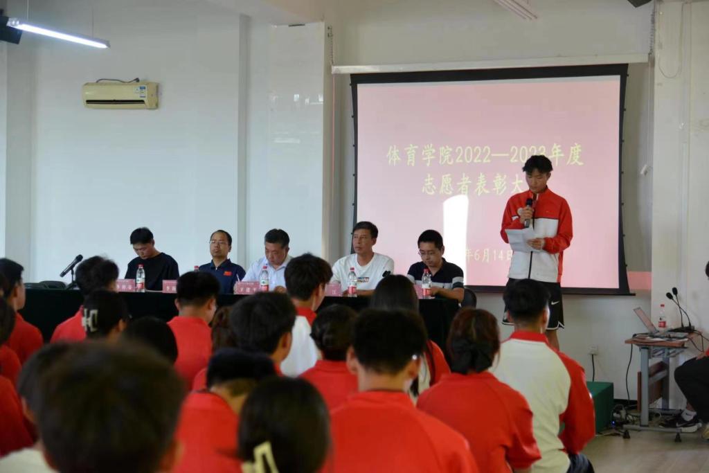 大会在雄壮的国歌声中拉开帷幕。首先,程祖浩老师对2022—2023学年志愿服务工作进行了总结,学院志愿服务工作以铸魂育人为主线,以志愿精神为支撑,以重大活动为契机,以塑造体院形象为己任,以“体育+志愿服务”为旗帜,大力提升志愿者服务广度和深度,形成了“五位一体”的志愿服务工作体系。随后,李梓豪老师宣读了优秀志愿者表彰名单。优秀志愿者代表、体旅2101班王景涛同学发言,他从志愿服务的经历、收获、等方面谈了自身感想和体会。