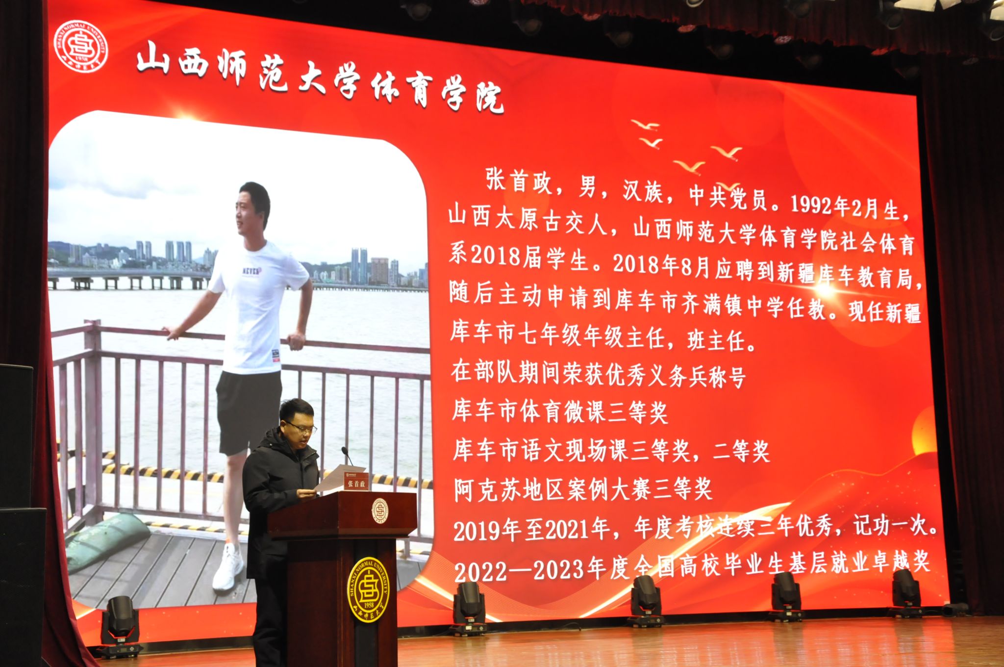 11月22日下午,第六期体育思政大讲堂在科学会堂举行。本次大讲堂迎来了我院社会体育系2018届学生、2023年全国基层就业卓越奖的获得者——张首政。张首政先生重返母校,为师生们带来了主题为“扎根基层 绽放青春光彩”的精彩报告。7790cnm必发集团党委书记卫建平、党委副书记张大为、社体系主任李俊明、团委负责人白翊辰、各辅导员老师以及400余名学生代表聆听了报告。报告会由白翊辰主持。