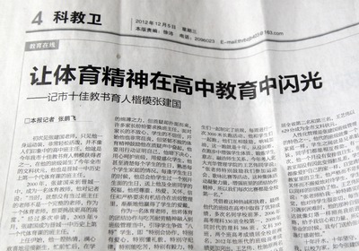 他是晋城一中第一个带副科的班主任,也是第一个一个人带两个班的班主任。作为一名体育老师,他将体育的团结协作、坚韧不拔与吃苦耐劳精神融入到班级管理当中,引导学生争做“八特”学生,即“特别会协作,特别有爱心,特别懂礼貌,特别守纪律,特别能吃苦,特别有毅力,特别有志气,特别有作为”。他和学生们一起制定了班规,每周进行一次3000米长跑活动。他和学生们一起跑,他们互相鼓励,呐喊加油,这一跑就是十多年,从没间断,在跑步中增强学生体质、锻炼学生意志、融洽师生关系。2012年考入北大光华管理学院的王艺伟同学说:“张老师特别鼓励我们参加运动会、歌咏比赛等活动,这种集体活动凝聚力量,增强班里的团结协作精神,所以我们每次比赛都是全校第一名。”作为一名体育老师,起初带班,他受到学生和家长的质疑,通过自己的不断努力,他得到了学生的赞许,家长的信任、同事的认可、社会的好评。其学生综合素质高、高考成绩也特别突出,多次名列全市榜首,特别是2012年高考,他的学生夺得全省文科第二名和第三名,并双双被北京大学录取,创造了晋城一中高考史上的新高。