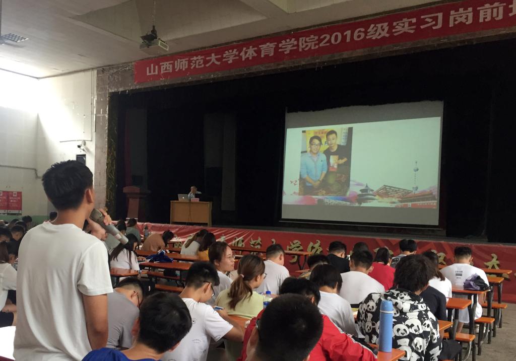为进一步加强我院学生创新创业教育工作,激励广大在校学生努力学习,6月23日下午,7790cnm必发集团武术与民族传统体育专业优秀毕业生、北京厢墨体育文化有限公司董事长、河南卫视“武林风”赛事山西省总代理、运营总监卫方泽,应学院邀请为武术与民族传统体育专业学生作创新创业实践专题报告,交流创新创业体会,分享创新创业心得,畅谈人生感悟。民族传统体育系主任权黎明、教务科岗前实习负责人许登云、院办公室(院校友办)主任高贯发,以及400多名民体系学生和岗前实习学生参加了会议。会上,卫方泽结合自身艰辛的就业创业经历,分享了成功经验。他鼓励同学们在就业、创业道路上多一点自信和勇气,要有自强不息、持之以恒的品质。他希望学弟学妹们珍惜求学时光,提前规划自己的职业生涯,摆正姿态,找到适合自身发展职业道路,实现自己的人生价值。同学们深有感触,纷纷表示要向优秀校友学习、看齐。同时,也启示我们要充分利用校院活动平台,结合专业特征,积极组织有关专业创新、文化创新、模拟创业等方面的校院活动,让创新创业精神融入专业教育和生活之中。(闫培烨 高贯发/文 许登云/摄)