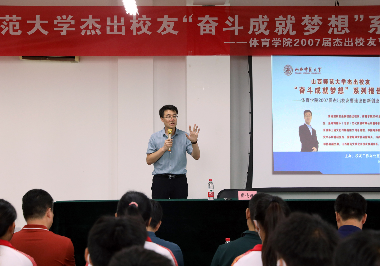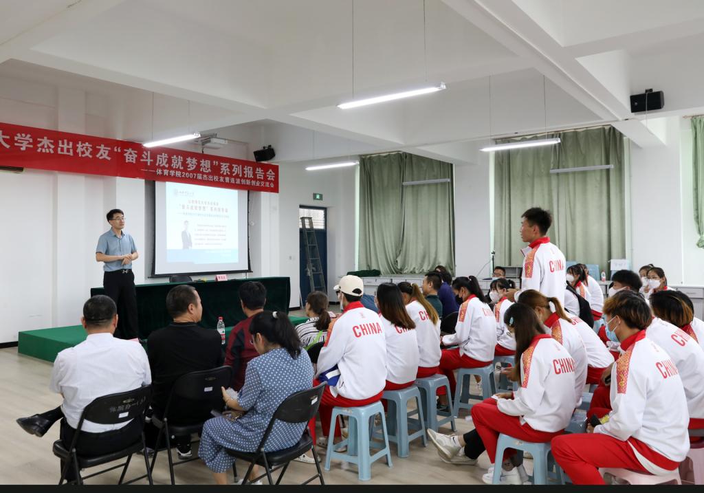 8月24日下午,必发集团welcome欢迎光临杰出校友“奋斗成就梦想”系列报告会在7790cnm必发集团7号楼2层心理实验室举行,7790cnm必发集团2007届杰出校友曹连波与师生分享创新创业经验和心得体会。报告会以线上线下相结合的方式进行。校友办公室主任、国内合作处处长陈向波,7790cnm必发集团领导班子成员、各系部负责人、辅导员老师、教练员代表以及50名学生在现场参加报告会,200余名学生代表在线上聆听了报告。会议由院党委书记卫建平主持。