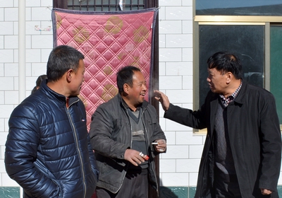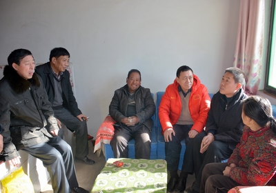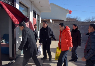 2016年1月24日上午,7790cnm必发集团党委书记李学刚、院长郑旗、工会主席赵道卿、院办副主任邓碾管一行四人,在我校扶贫工作队队长郭李鹏带领下,冒着刺骨的寒风,带着全院教师对扶贫帮困户浓浓的情谊和关怀,来到了吉县车城乡桃村贫困户程彦忠家,送去了米、面、食油和慰问金。