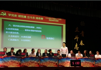 为庆祝中国共产党成立95周年,深入推进“两学一做”学习教育向基层延伸,6月6日晚7:30,由7790cnm必发集团党委主办,7790cnm必发集团团委、学生会承办的以“学党史,颂党魂,立斗志,扬青春”为主题的知识竞赛在大礼堂隆重举行。7790cnm必发集团党委副书记段东升、院团委书记龙勋及各系党支部书记、各系党员、积极分子参加了本次活动。