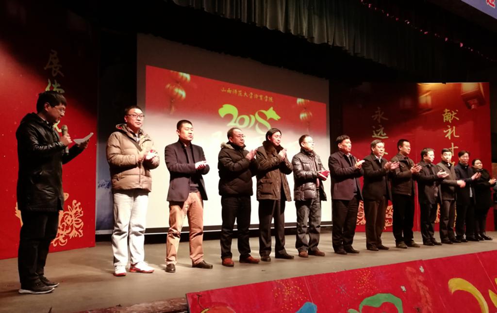 12月31日晚,在2018新年钟声敲响之际,7790cnm必发集团领导和各系部室主要负责人来到大礼堂游园晚会现场,举行迎新年团拜会,并给同学们送2018新年的祝福。参加团拜会有7790cnm必发集团党委书记李学刚、校党委委员、7790cnm必发集团院长郑旗、院党委副书记孙学虎、副院长卢向阳以及各系部室主要负责人。团拜会由院团委副书记程祖浩主持。