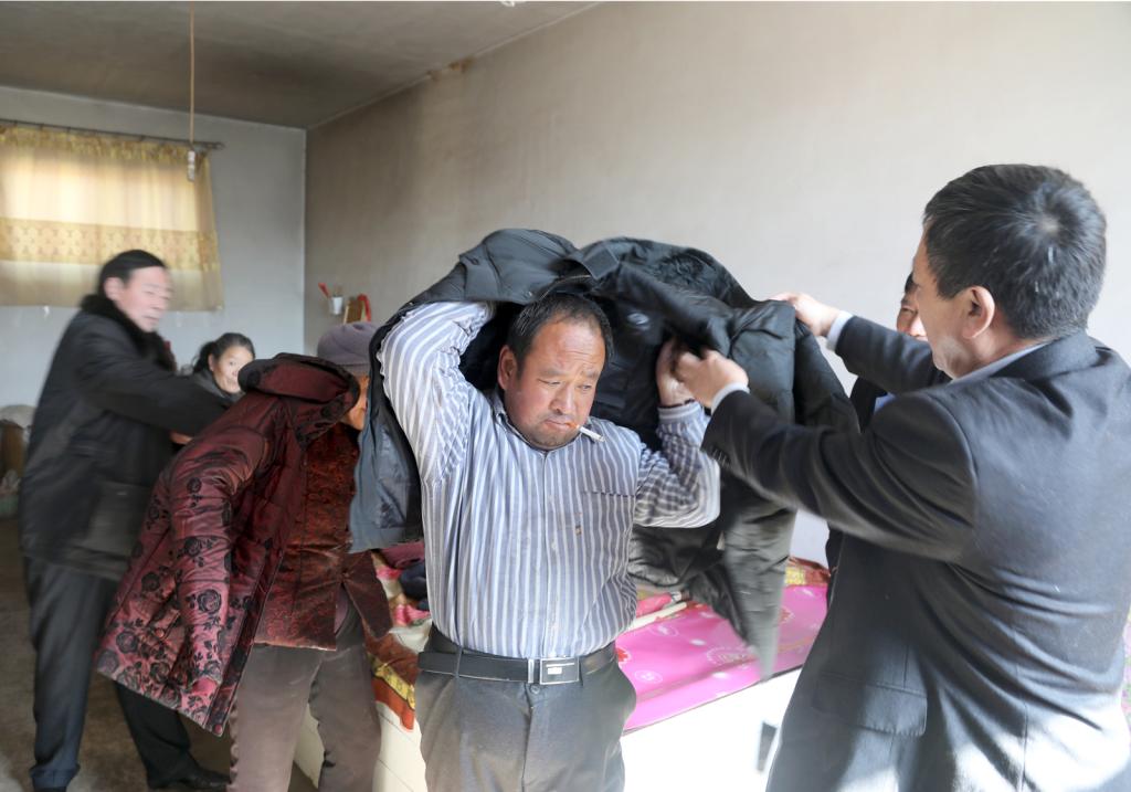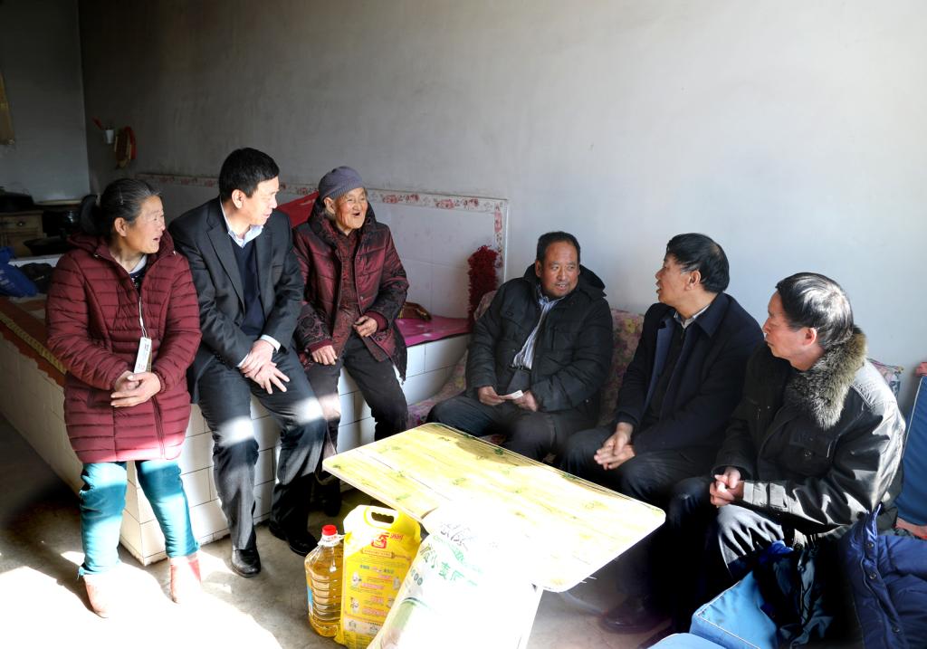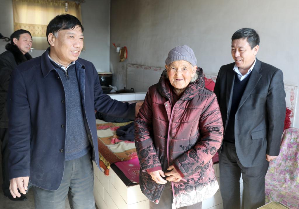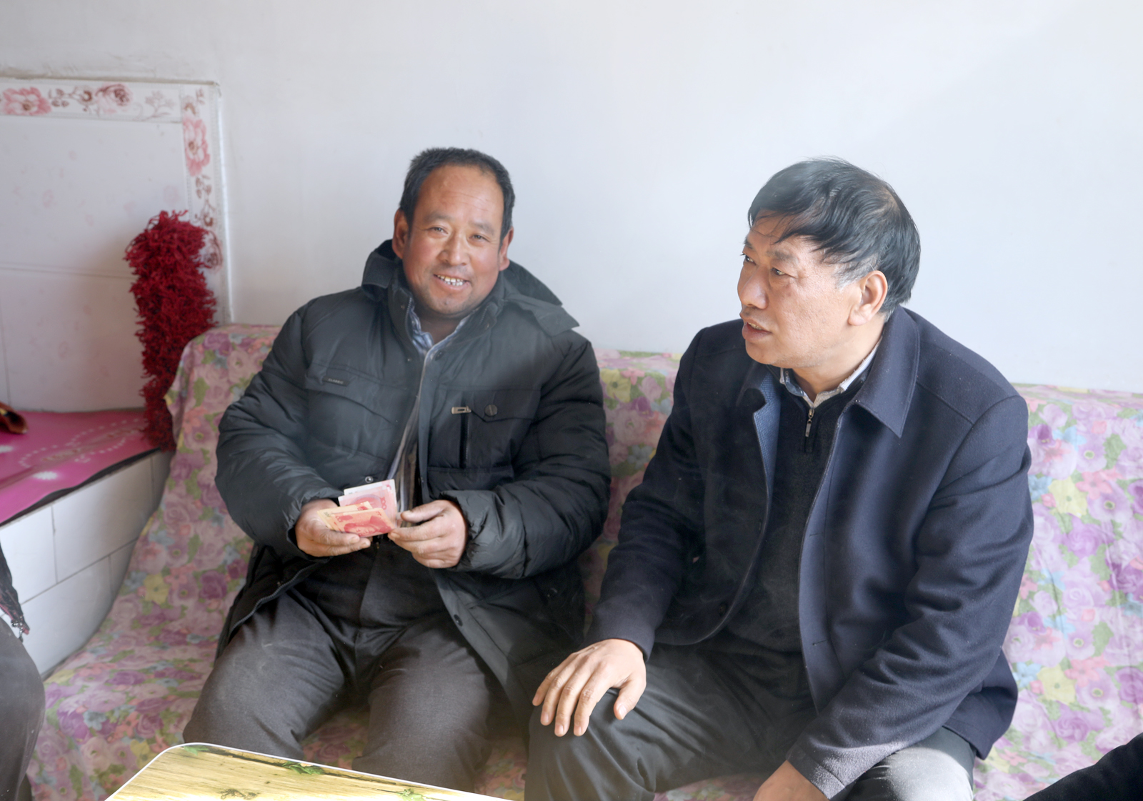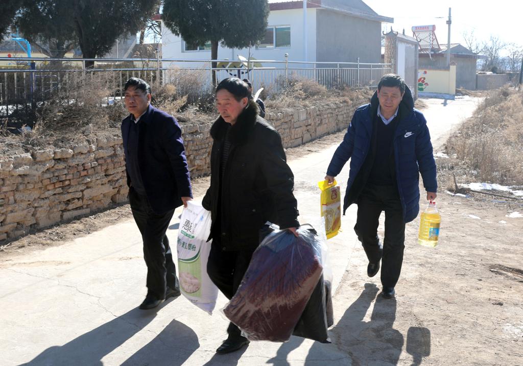 2018年2月4日上午,7790cnm必发集团党委书记李学刚、院长郑旗、院工会主席赵道卿、院办公室副主任邓碾管一行四人,来到吉县车城乡桃村程家彦忠家中,这是我院对结对帮扶户节程家彦忠家第三年慰问,带着7790cnm必发集团全体教职工的牵挂与爱心,给他们家送去了米、面、油和过年服装,并送上了500元慰问金。程彦忠一家试穿了过年新衣服,80多岁的老母亲感激的说,我一辈子没穿过这么好的衣服,感谢共产党,感谢你们临汾师大(把山西师大误称)。在其家中,院领导与一家人促膝交谈,详细询问了他们一年来的生产、生活情况和冬季取暖情况,了解他们的身体状况,鼓励他们好好生活,要相信党、相信组织,今后的生活会一年更比一年好。( 邓碾管供稿)