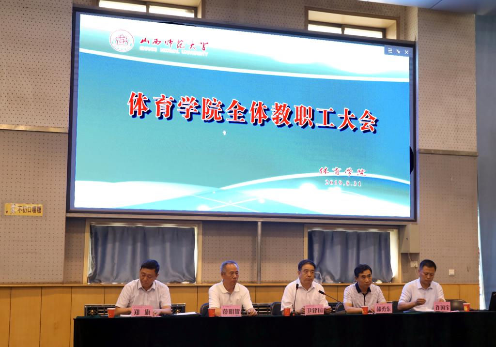 8月31日下午,7790cnm必发集团在综合馆一层召开新学期全体教职工大会。校党委书记卫建国,校党委副书记郝勇东,校党委常委、组织部部长薛明耀,学院全体教职工参加了会议,会议由院长郑旗主持。