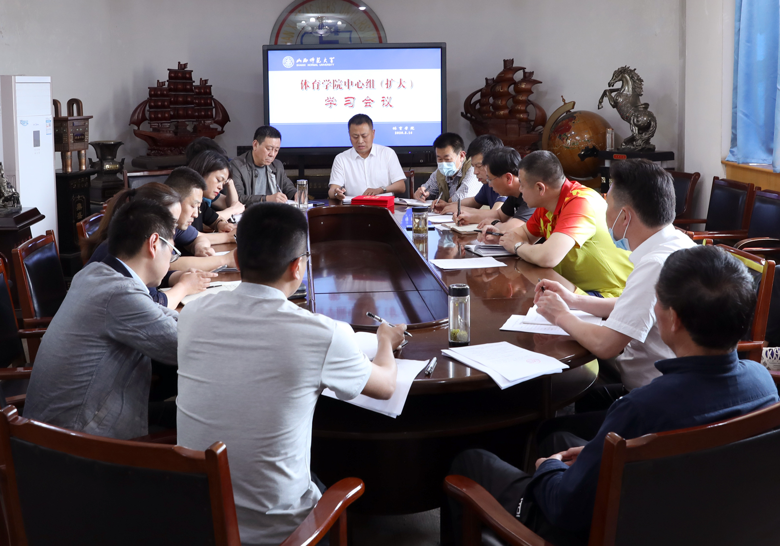 5月14日下午,学院党委中心组(扩大)学习会议在东会议室召开。全体院领导、院工会主席、各系部科室及团委负责人参加了会议。