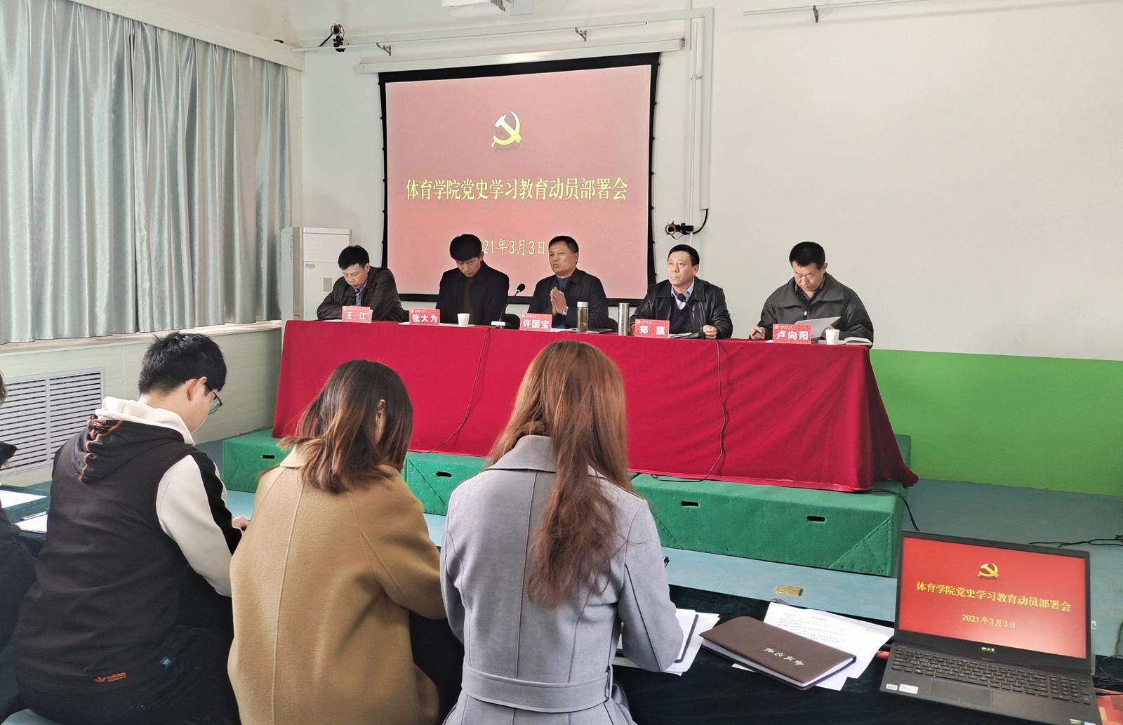 3月3日上午,学院在运动生物力学实验室召开全院党史学习教育动员部署会议。院领导、院工会、团委、各系部科室负责人、党支部书记参会,全体辅导员列席会议。会议由院长郑旗主持。