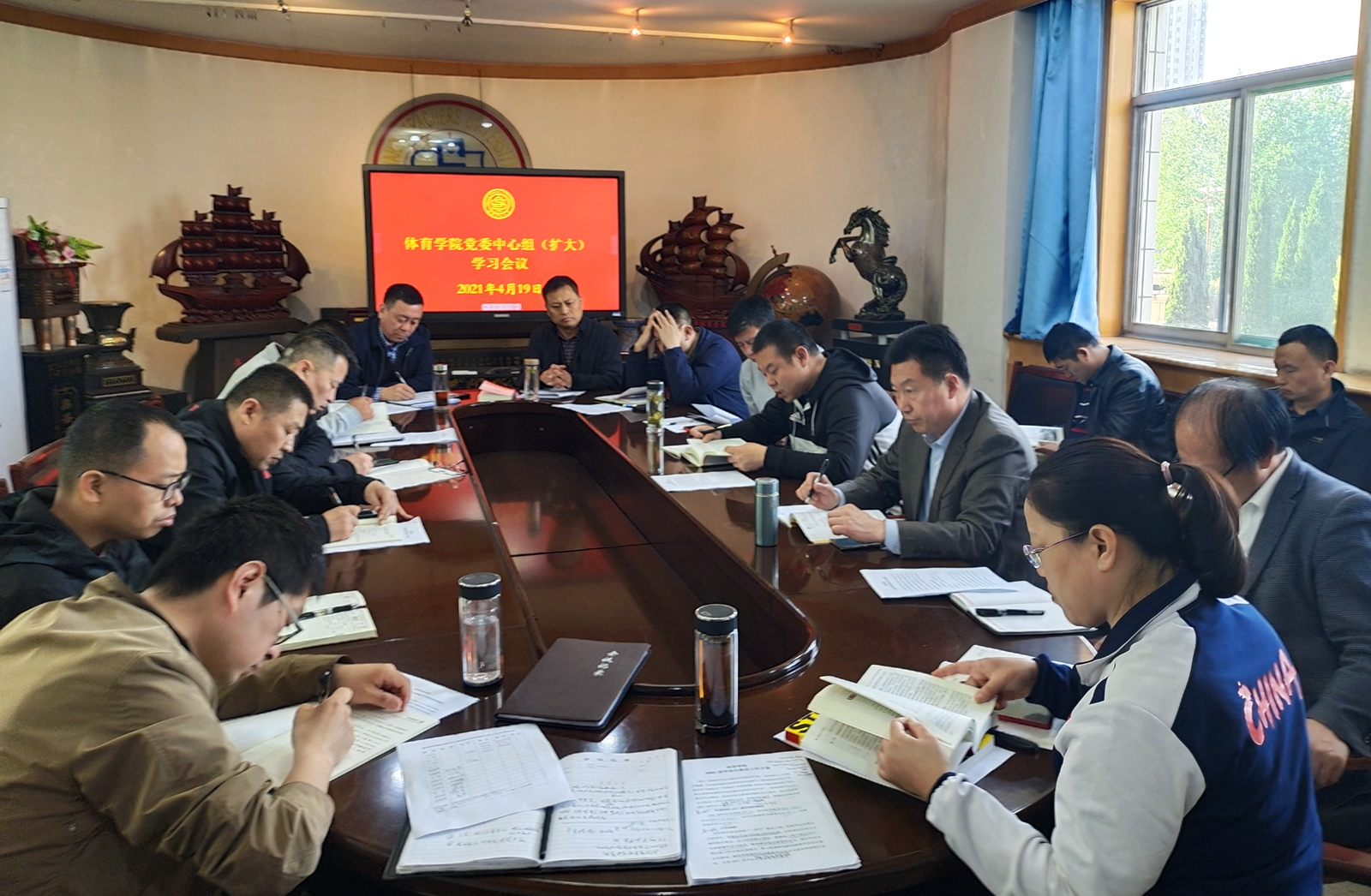 4月19日上午,院党委理论学习中心组(扩大)党史学习教育专题会议在东会议室召开,院领导、各系部科室负责人、党支部书记参加学习。学习会由院党委书记许国宝主持。