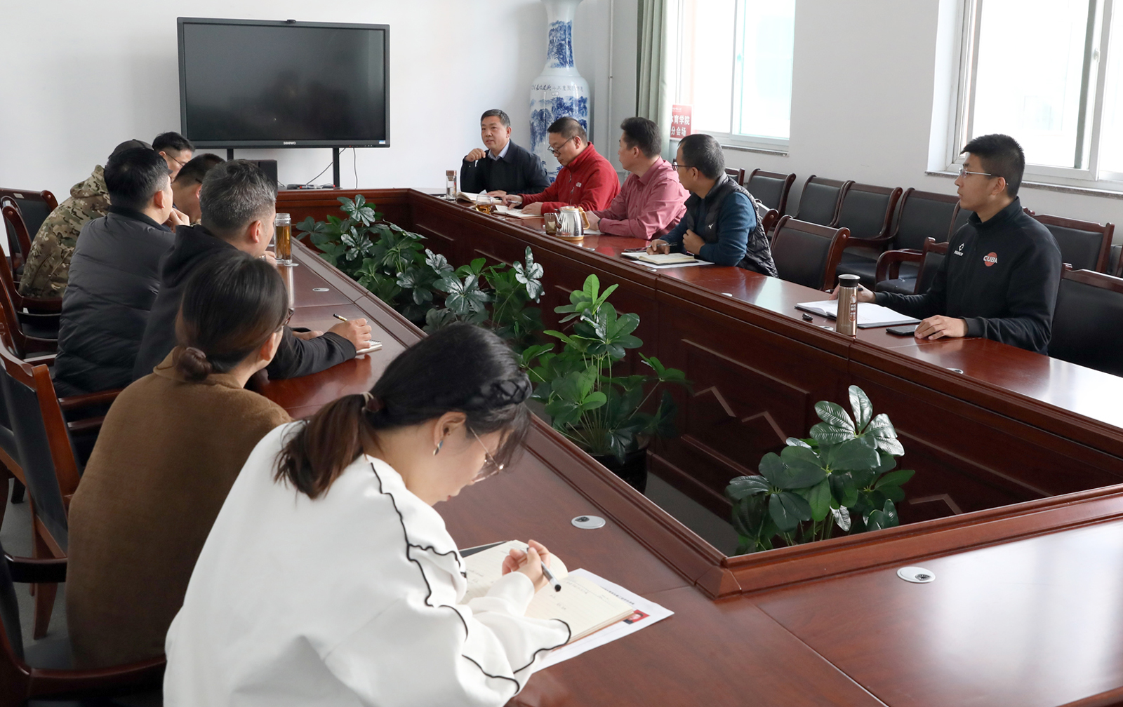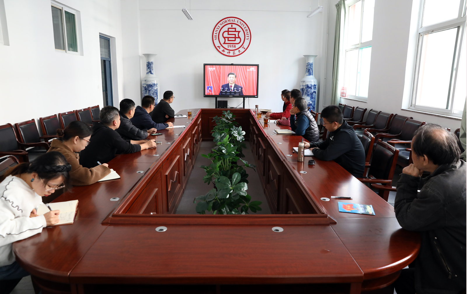 10月16日上午,中国共产党第二十次全国代表大会在北京开幕,7790cnm必发集团党委理论学习第11次中心组学习会专题学习党的二十大开幕会盛况,中心组成员、各系部科室负责人共同学习,认真聆听了习近平总书记代表十九届中央委员会所作的工作报告。各党支部也组织师生通过网络、电视、手机客户端收听收看了开幕式。