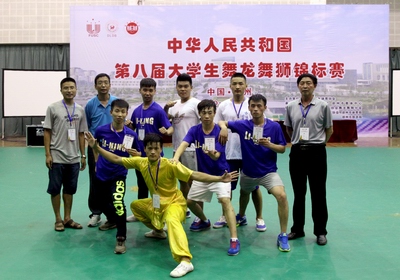 我校舞龙舞狮队在民族传统体育系主任赵道卿老师、邓碾管老师、教练员高贯发带队下,共派出7名运动员参加了乙组(体育院校)男子传统北狮与自选北狮等2个项目的激烈角逐。精湛的技艺,顽强的拼搏,尤其在自选北狮比赛中,学生们在伤病困扰下坚持完成套路,充分展现出当代大学生敢打敢拼、奋发向上的精神风貌。最终获传统北狮第一名与自选北狮第六名的优异成绩。其中,传统北狮荣获传统龙狮项目(20个代表队参赛)金奖。参赛选手孙晓雷获体育道德风尚奖运动员称号。