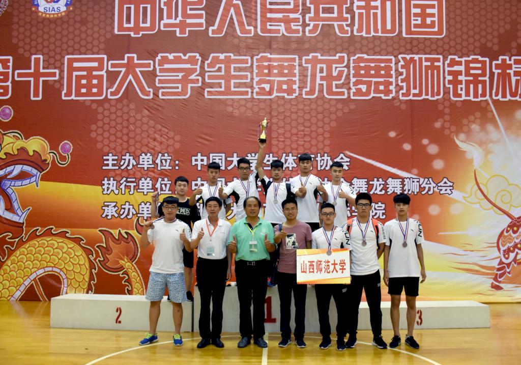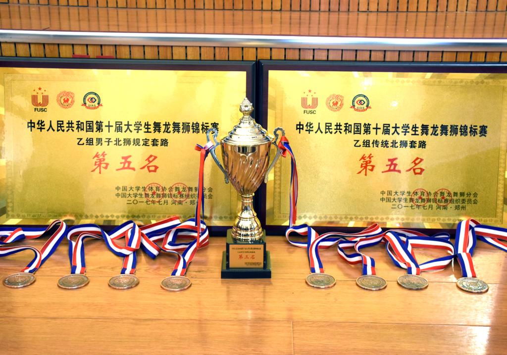 本届竞赛分为甲组(普通高校)、乙组(体育院校)、丙组(职业技术学院)三个组别,竞赛项目设有舞龙、舞狮、传统项目、荷花龙、教学舞龙等七个项目。我校代表队参加了乙组北狮自选套路、北狮规定套路与北狮传统套路的比赛,经过全体队员们的团结协作、奋力拼搏,最终在激烈的体育院校组比赛中脱颖而出,获北狮自选第三名、北狮规定第五名、北狮传统套路第五名的优异成绩,并首次荣获乙组男子龙狮团体第六名的佳绩。高贯发老师被评为优秀教练员。