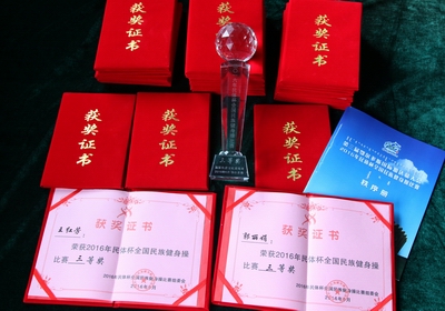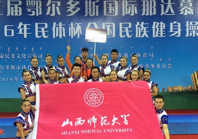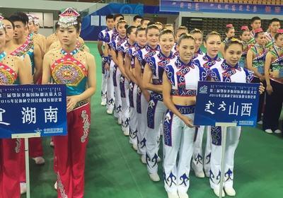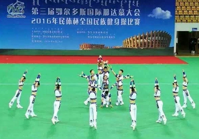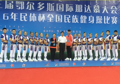 6月23日,由国家民委文化宣传司主办,鄂尔多斯市体育局和鄂尔多斯市民族事务委员会共同承办的“民体杯”2016年全国民族健身操比赛在鄂尔多斯市体育中心隆重举行。国家民委文化宣传司副司长钟延雄、鄂尔多斯市副市长李国俭、内蒙古自治区民委社会发展处、鄂尔多斯市体育局、鄂尔多斯市民委等负责同志出席了开幕式。本次比赛是第三届鄂尔多斯国际那达慕大会系列赛事的一项重要内容。共有来自全国9个省市的代表队参加比赛。我院由教练员郭丽娟和王红芳老师及17名运动员组成的民族健身操代表队,通过精心组织,刻苦训练,经过两轮激烈的角逐,团结一心,顽强拼搏最终以17.333的成绩获得三等奖。通过比赛,积极推动了全国少数民族传统体育活动的广泛开展,锻炼了运动员和裁判员队伍。