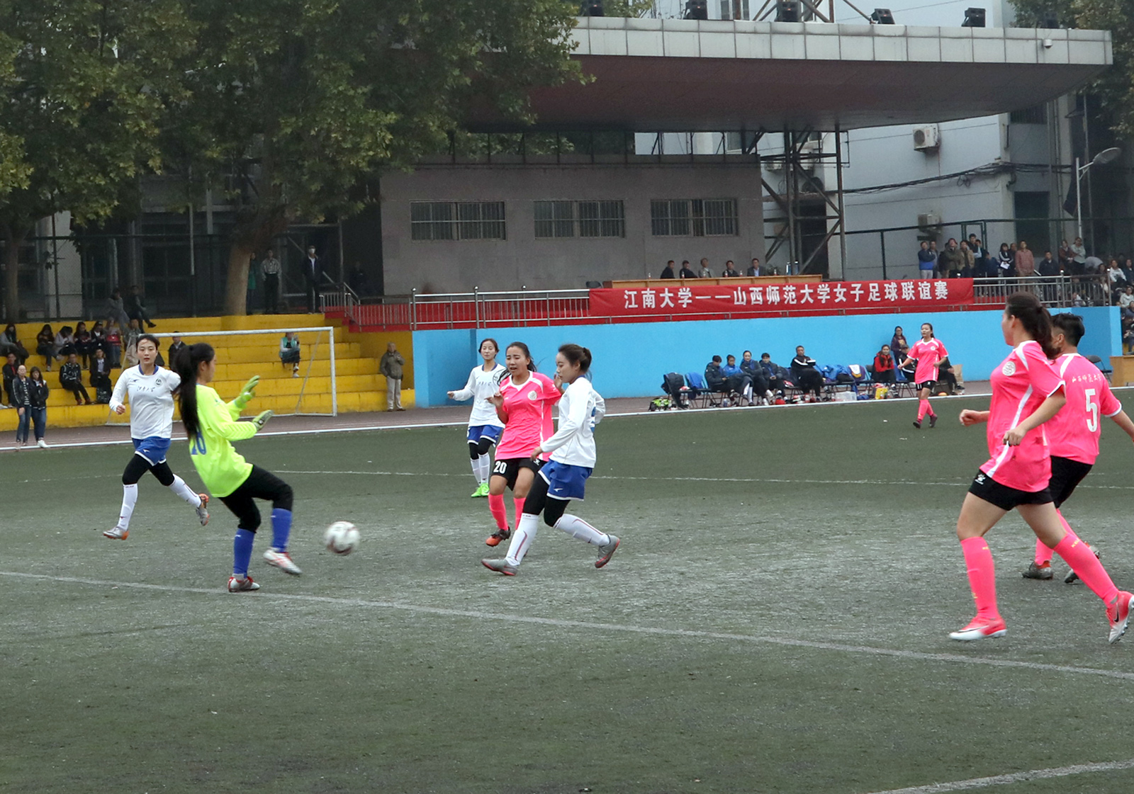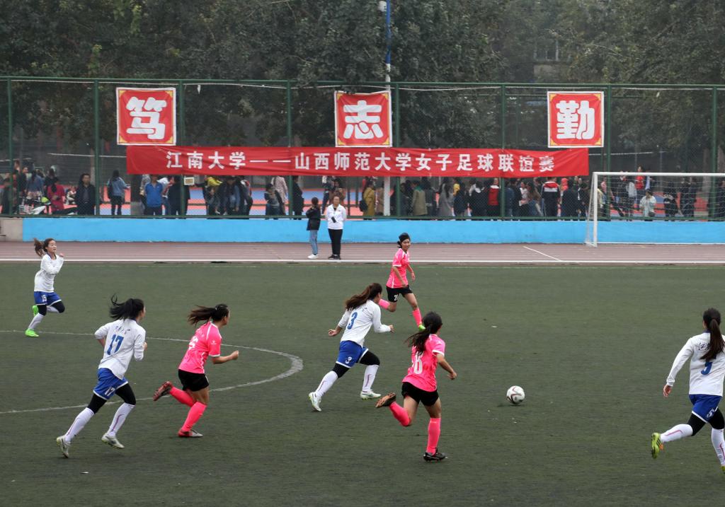 14日下午四点和15日下午三点半,两队进行了进行了十一人制的足球友谊赛。赛场上绿茵巾帼你争我抢,生龙活虎,展示了双方队员娴熟的技战术水准,令人眼花缭乱的配合加上快速的攻防转换以及各种门前大力抽射,为校园假日增添了愉悦的气氛。在比赛中江南大学的队员表现出色,队员整体素质较好,个人技术较为全面动作灵活,传接球意识较好判断球的落点准确,进攻主动防守积极配合默契。我校队员由于组队时间短、临场经验少,配合还不够流畅,但我校女足队队员凭着努力拼搏、永不言败的精神,顽强拼搏,赛出了自己的水平。最终两场比赛江南大学女足均已2:0获胜。