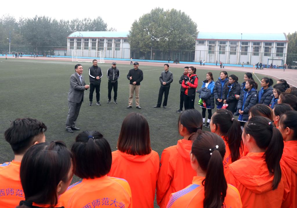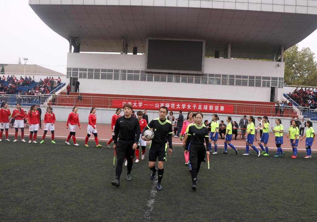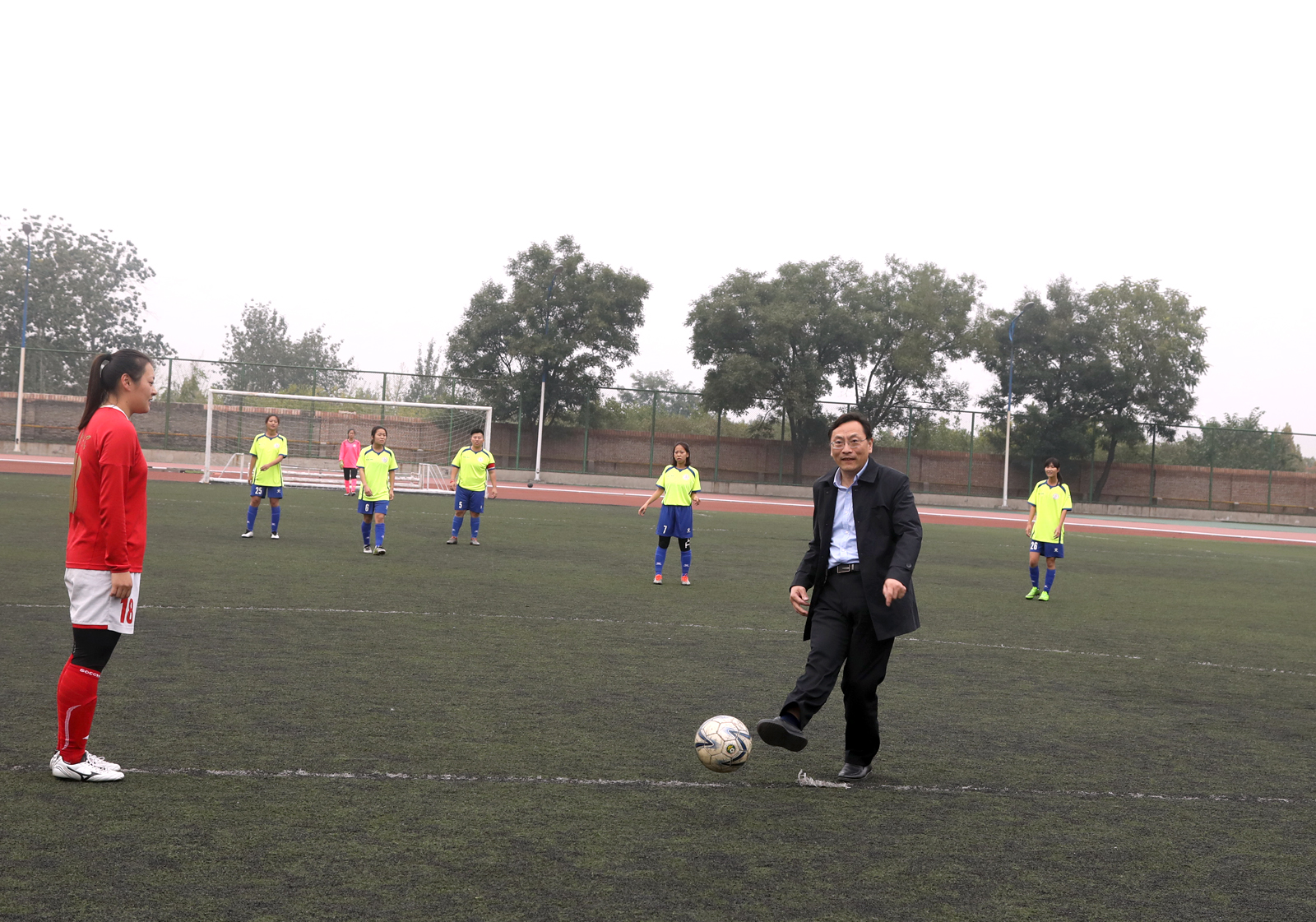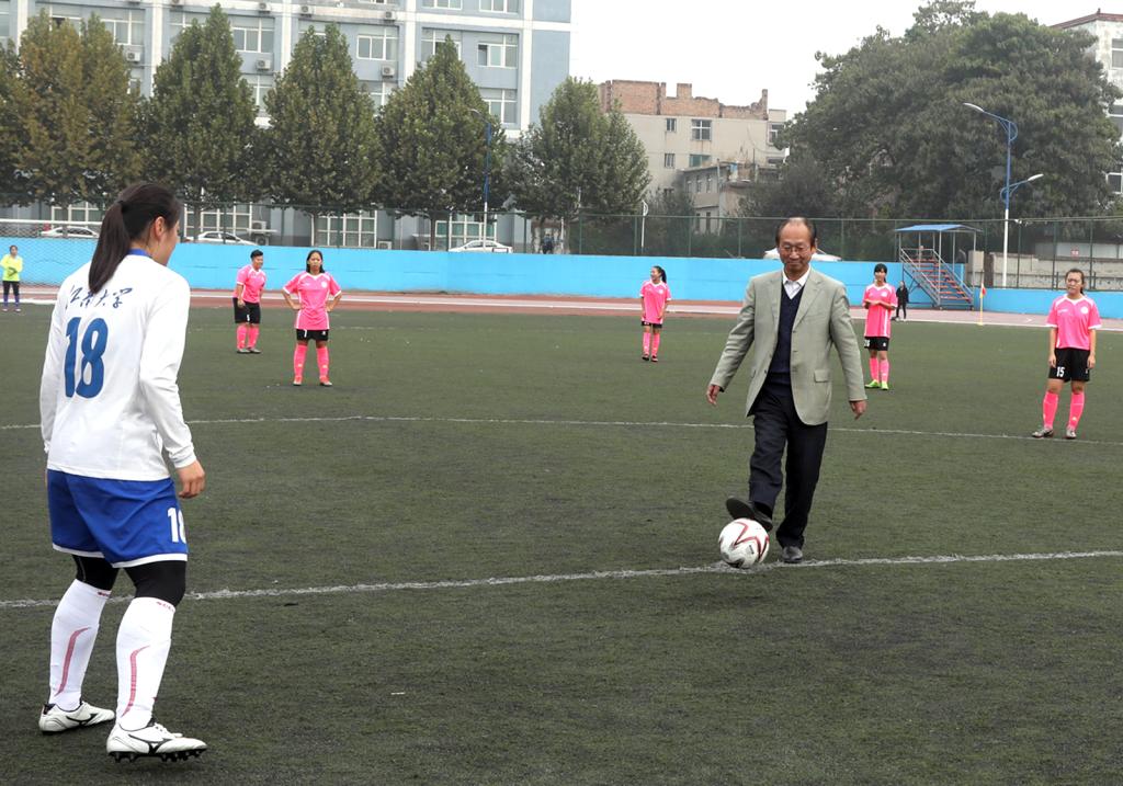 党委常委、校运动委员会主任、副校长车文明为第二场友谊赛开球