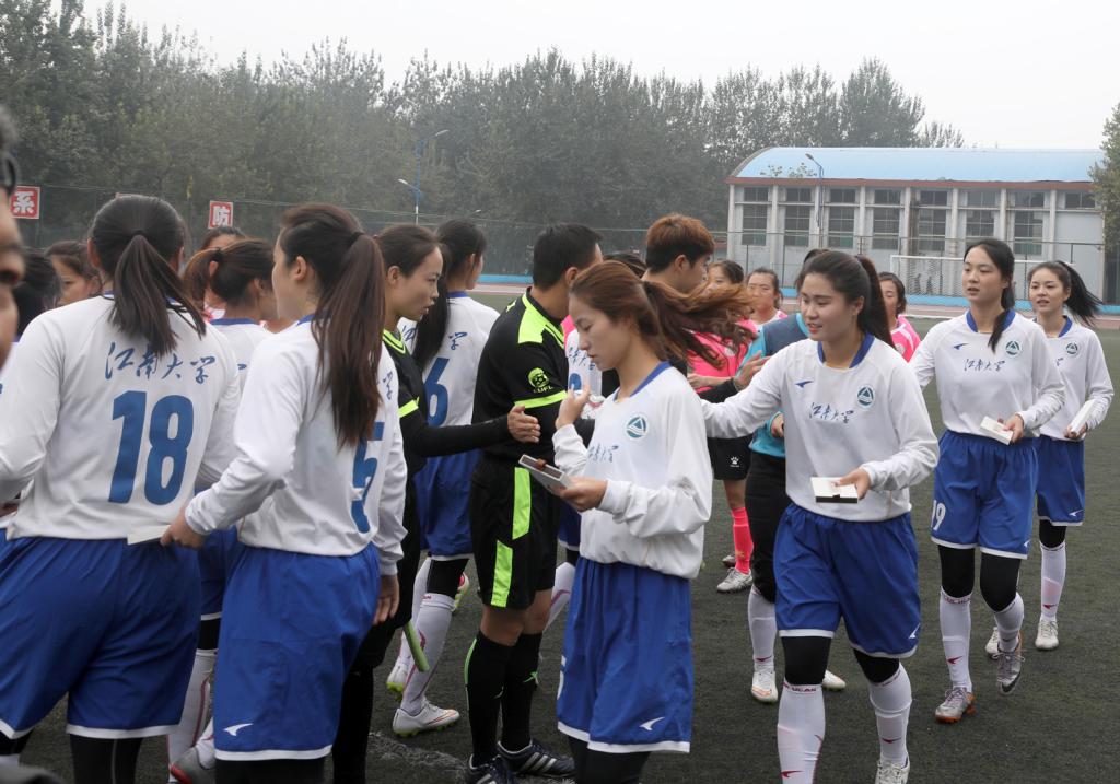 足球场上切磋球技,赛后双方教练对本次比赛进行了点评,双方队员也进行了密切的交流。此次江南大学女子足球队的来访交流,不仅为我校女子足球队提升综合实力提供了一次实战的机会,更是搭建了一个以体育精为纽带促进我校与江南大学的校园体育文化交流的平台。(成婉毓 赵锦涛/文邓碾管/摄)