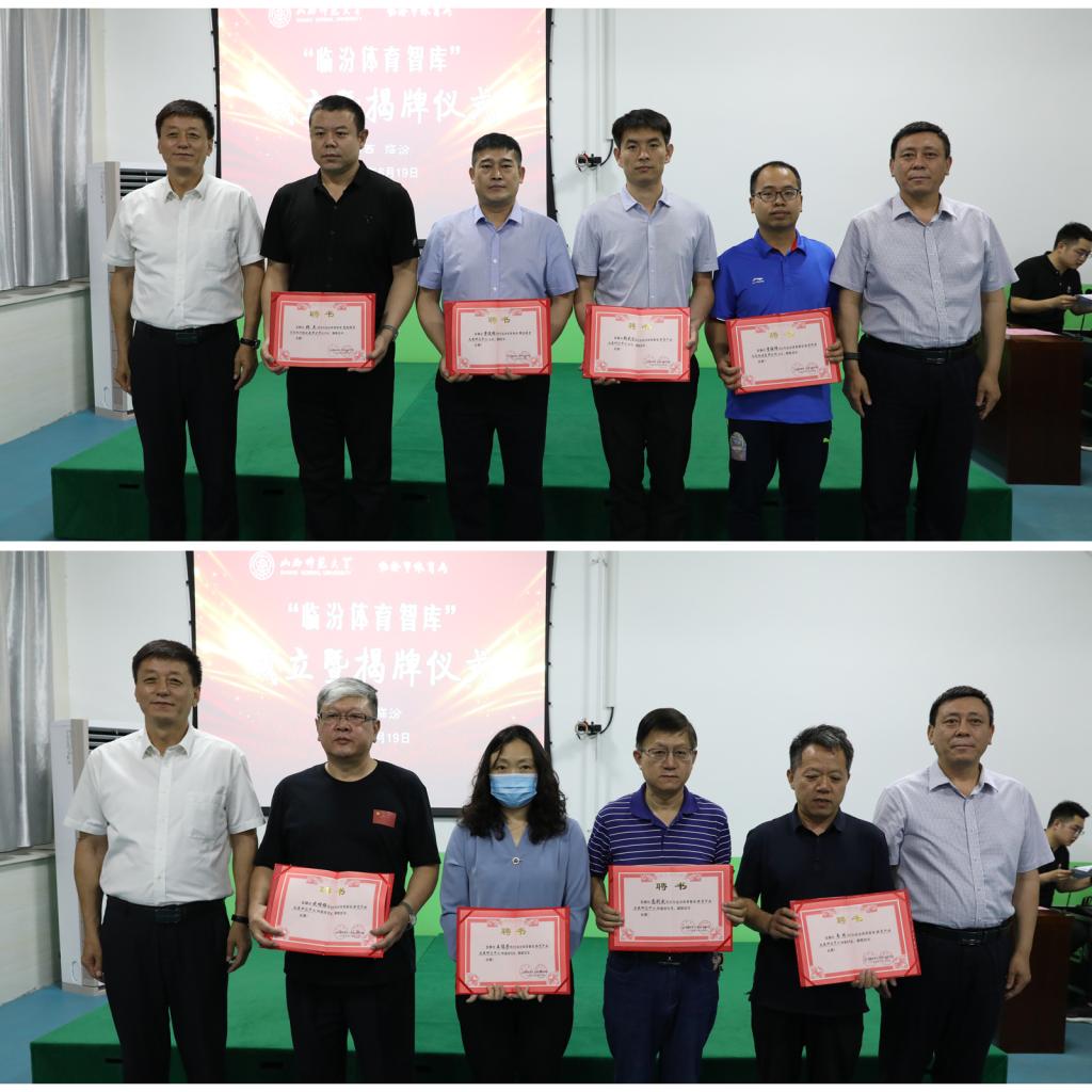 临汾市体育局局长陈海平宣读了关于成立“临汾体育智库”的通知,介绍了体育智库成员,四个研究中心(所)和特约研究员,并为相关研究所、特约研究员颁发证书。