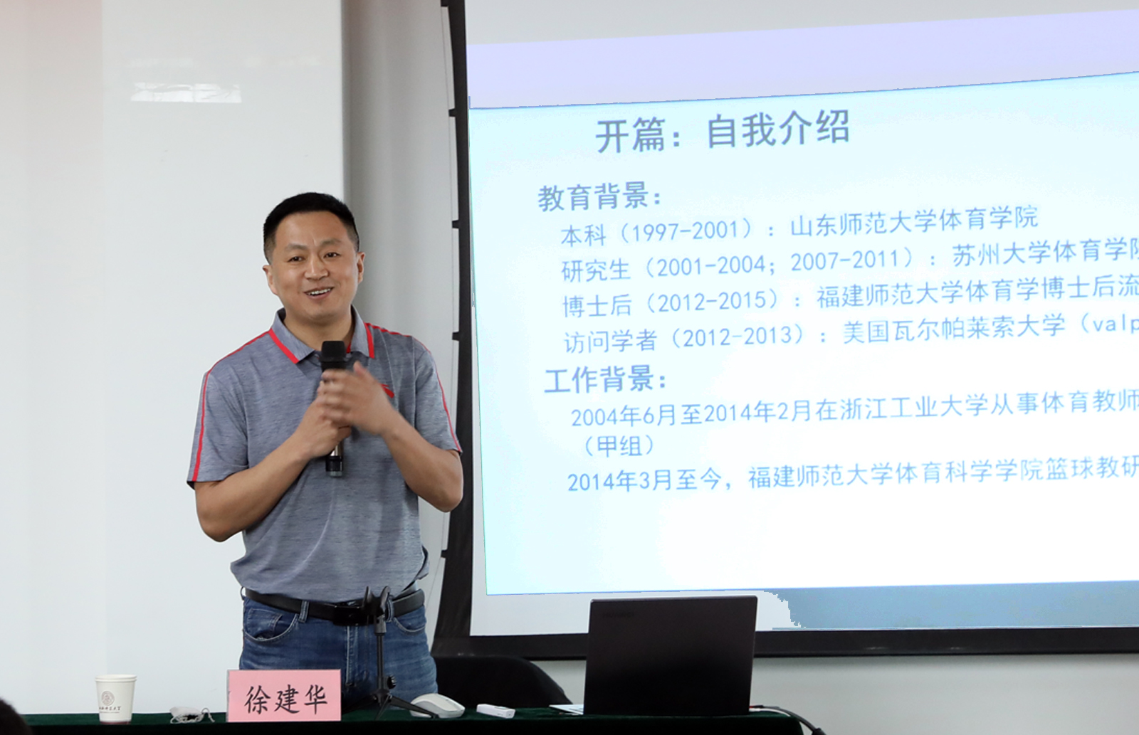 5月21 日上午,福建师范大学徐建华教授应邀为我院师生做了题为《美国NCAA大学篮球教练专业化发展及执教理念》的学术报告,报告会由副院长李海伟教授主持,部分教师和全体研究生聆听了报告。