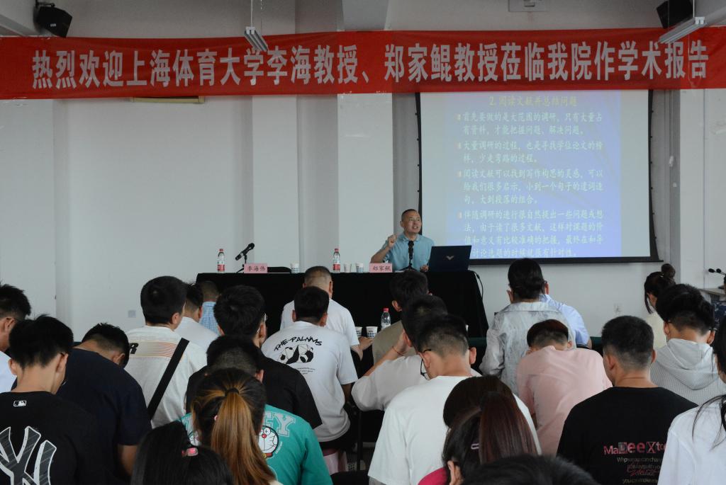 6月26日上午,上海体育大学博士生导师郑家鲲教授应邀为我院师生作了题为《体育必发集团的正确打开方式——论文写作那些事儿》的学术报告,报告由副院长李海伟教授主持,部分教师和全体研究生聆听了报告。