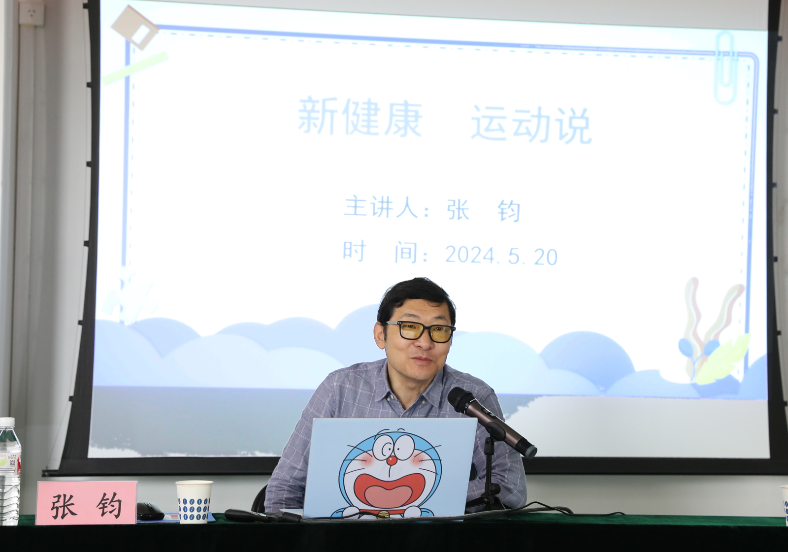 张钧教授以“新运动健康说”为题,首先通过视频引入当下社会公众关注的“什么是健康?”这一话题和概念,并围绕公众健康观念、健康问题、健康基石以及缺乏运动带来的突出问题进行了深入浅出的分析;接着他就运动与健康的关系、运动能力的测量指标和运动处方的制定做了详细的陈述;最后,他以“你会跑步么?”这一问题为例,报告了科学健身中“跑步”动作的过程及细节性问题。在互动环节,我院师生就运动性伤病中信号通路指标选取向张钧教授进行了询问和交流。