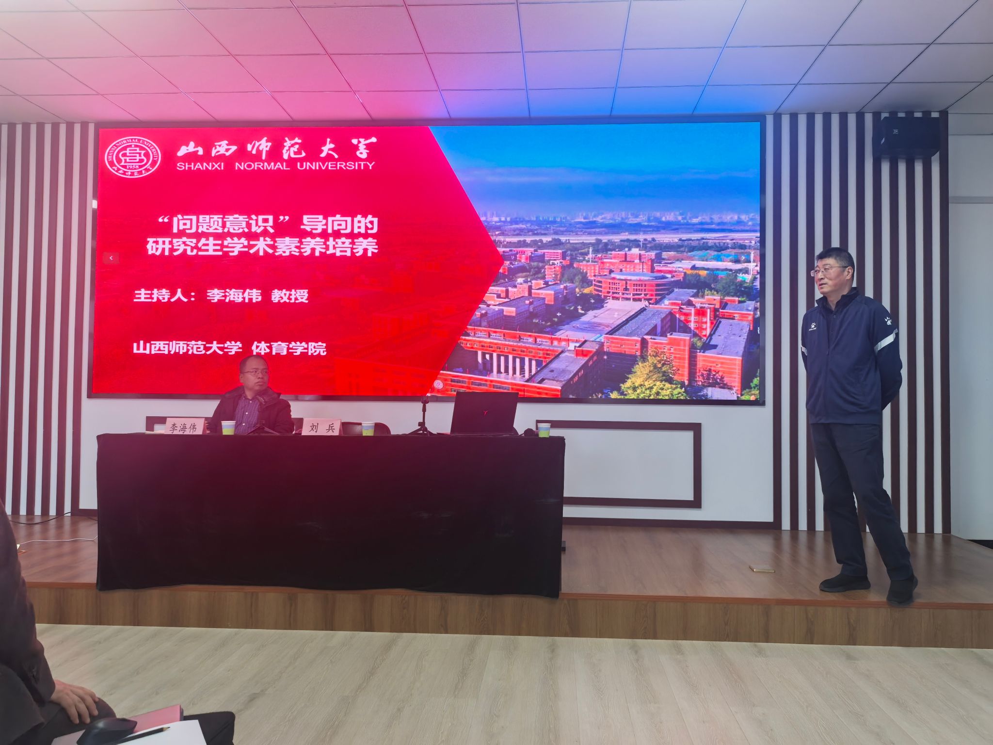 为提升我院研究生体育学术素养,2025年2月23日上午,我院特邀上海大学刘兵教授莅临做专题报告。报告题目是“问题意识导向的研究生学术素养培养”。报告由王彤院长主持,我院近三年引进博士与40岁以下青年教师参会,以及在校研究生聆听报告。