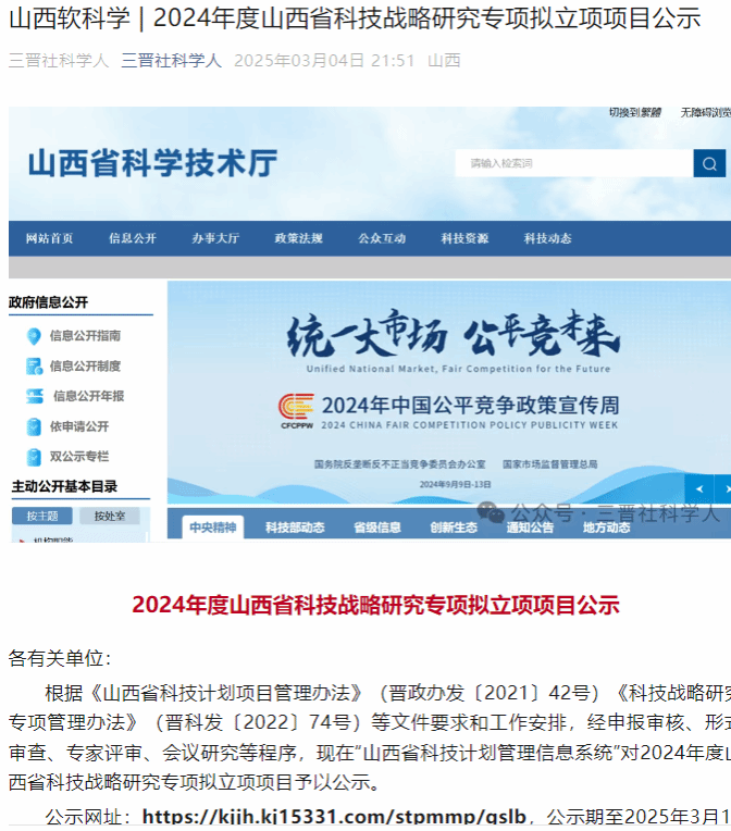 近日,山西省科技厅公布了2024年度山西省科技战略研究专项课题拟立项名单,经申报审核、形式审查、专家评审、会议研究等程序,我院张杰副教授申报的“科技支撑山西体育产业高质量路径研究”获得一般项目拟立项公示。
